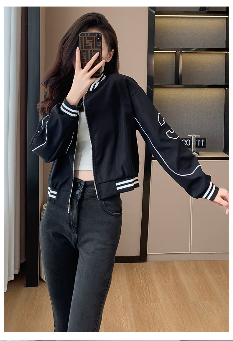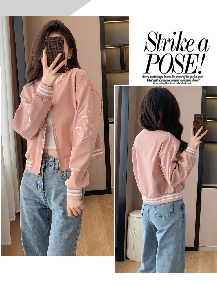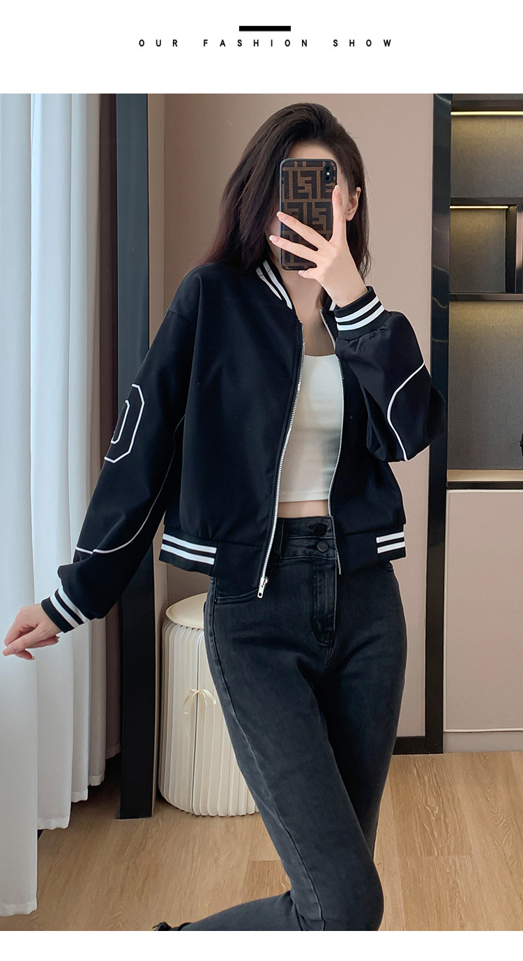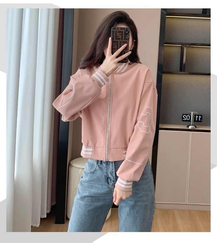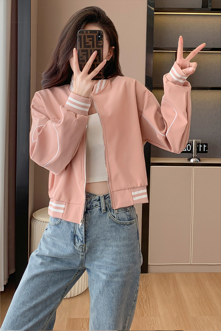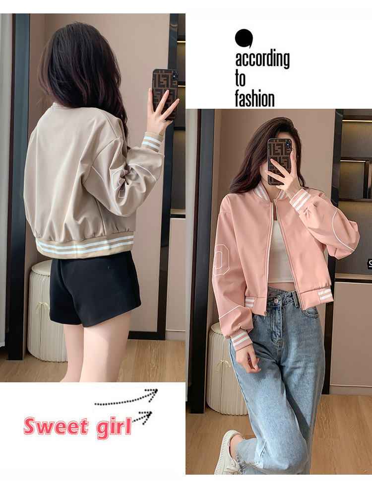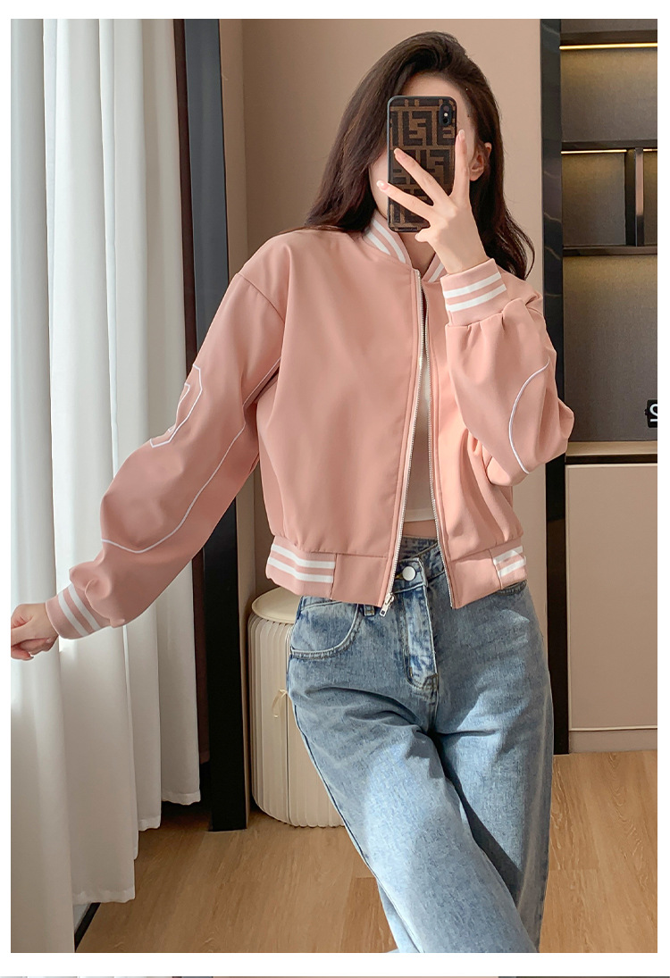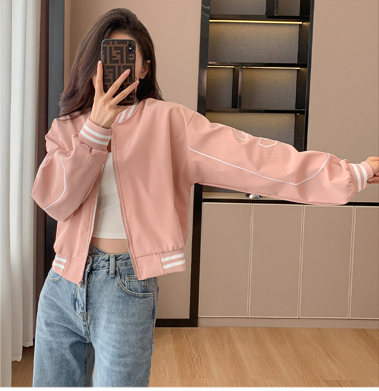 百媚生 棒球服外套女秋季休闲运动短款夹克上衣E245