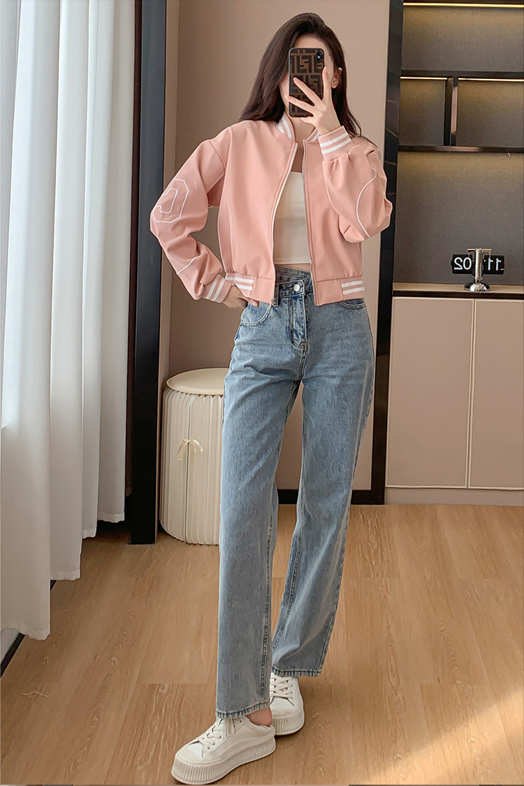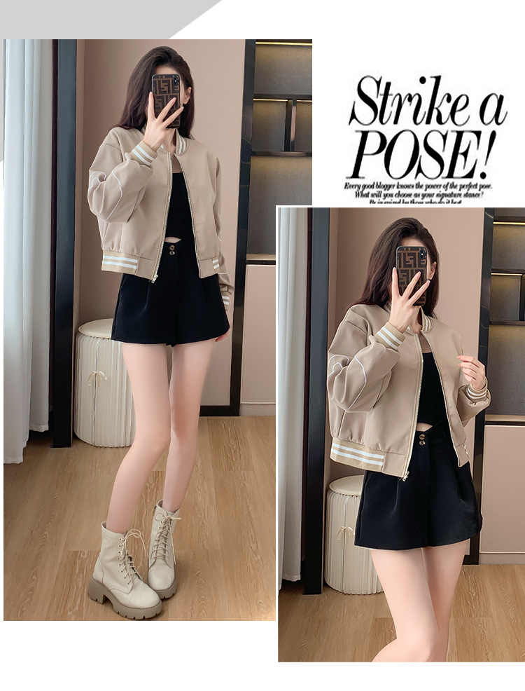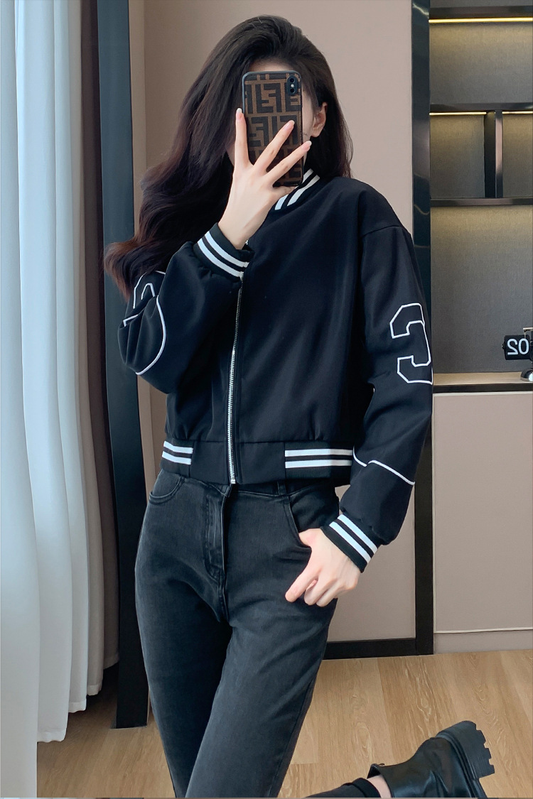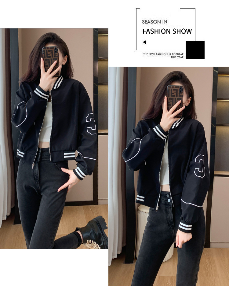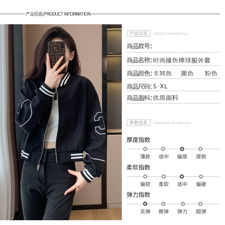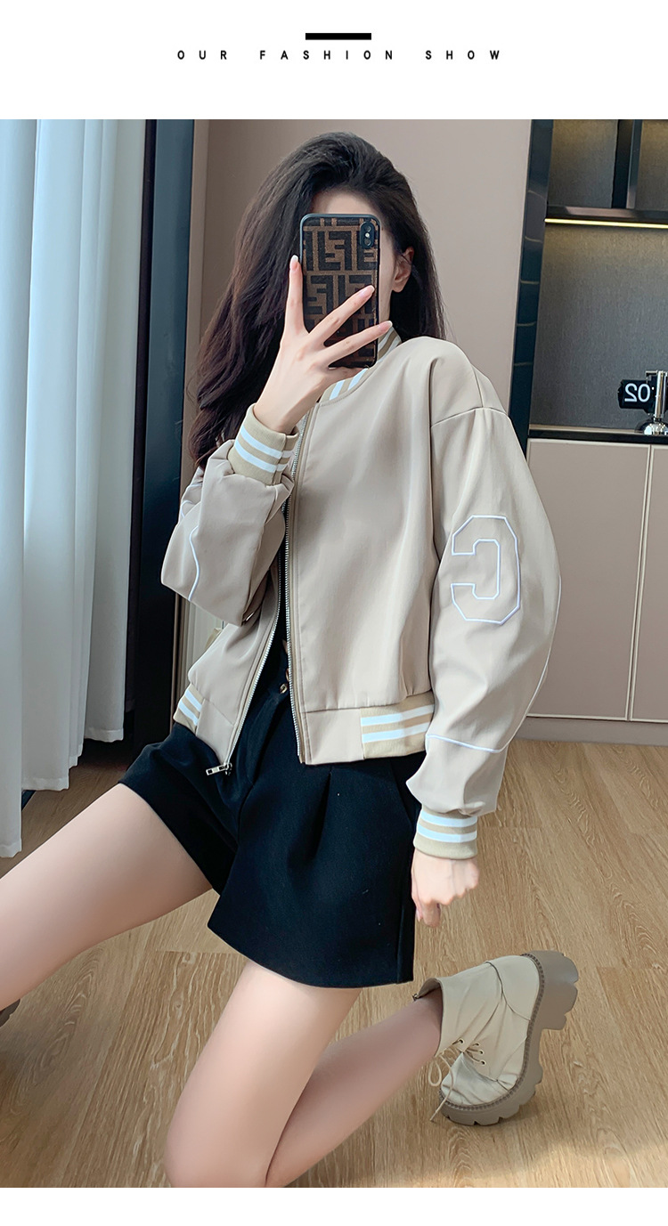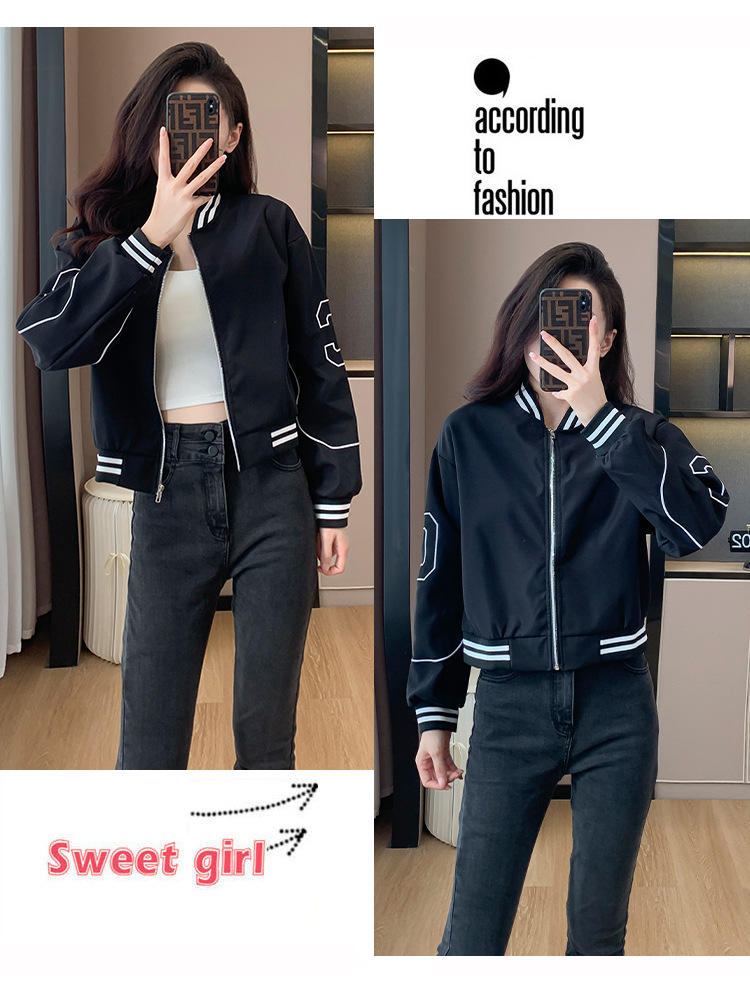 百媚生 棒球服外套女秋季休闲运动短款夹克上衣E245