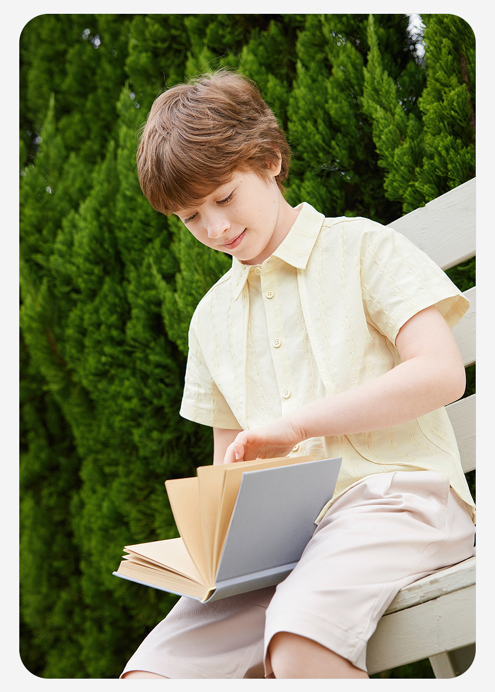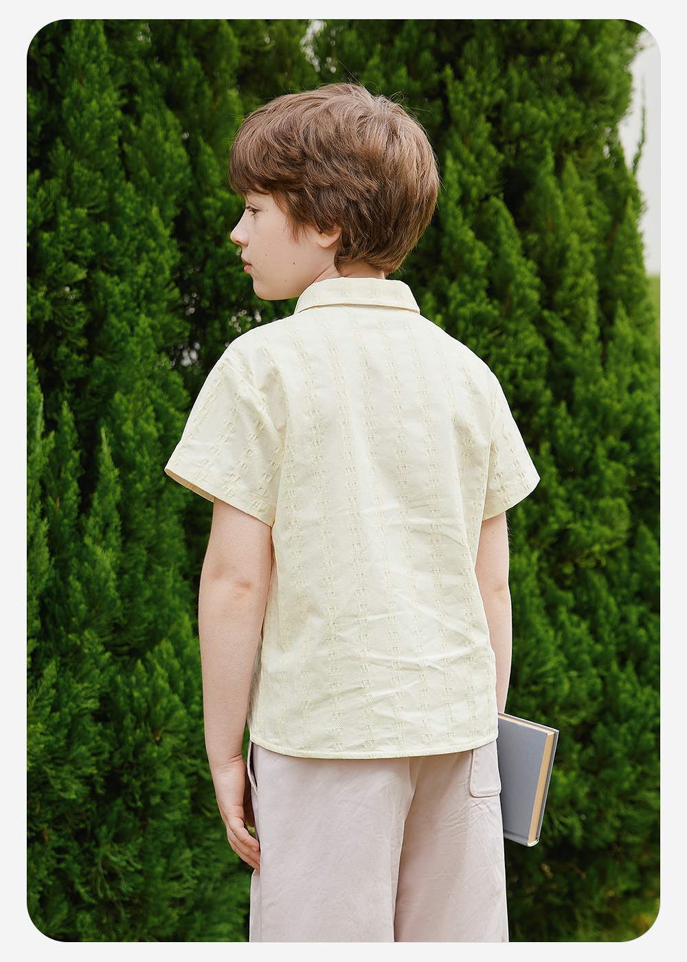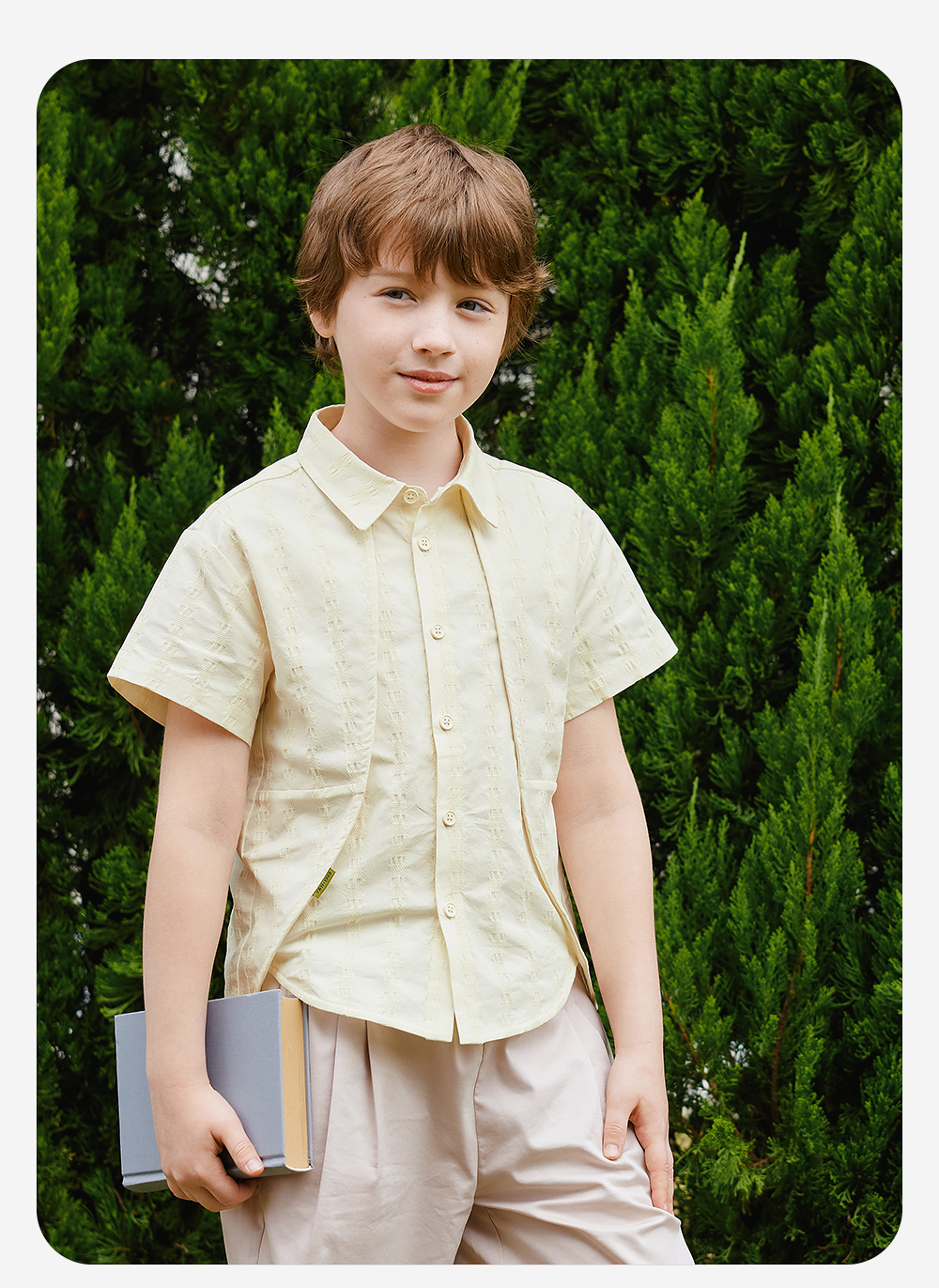 英氏儿童衬衫夏季短袖透气男童上衣休闲百搭纯棉衬衫中大童衣服