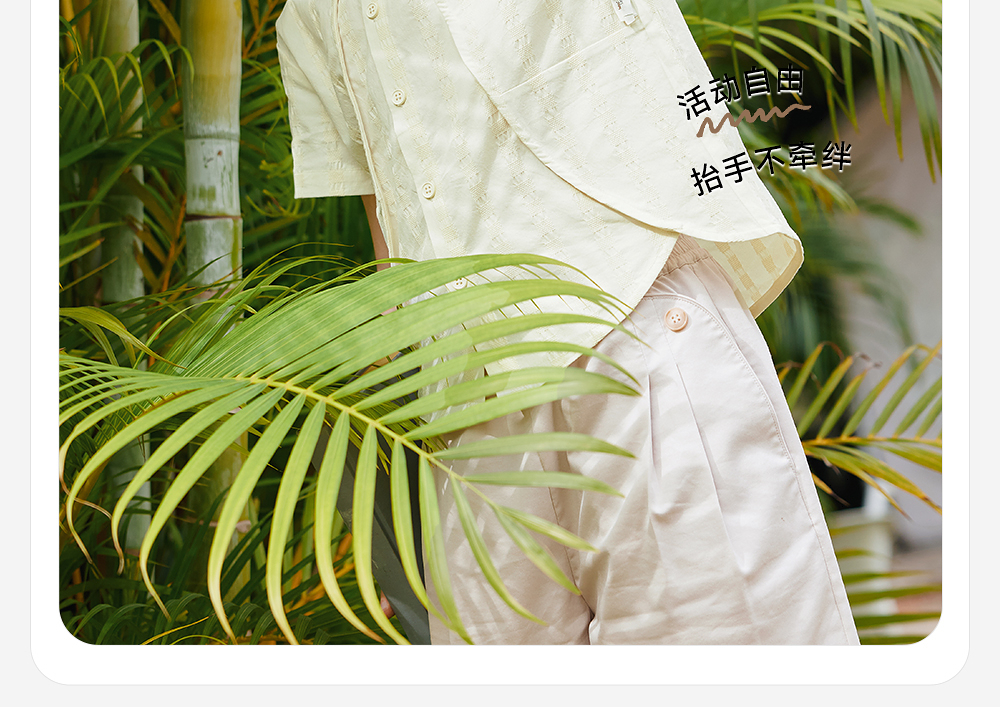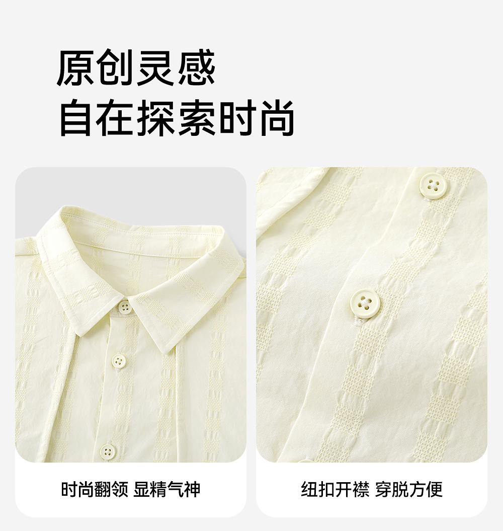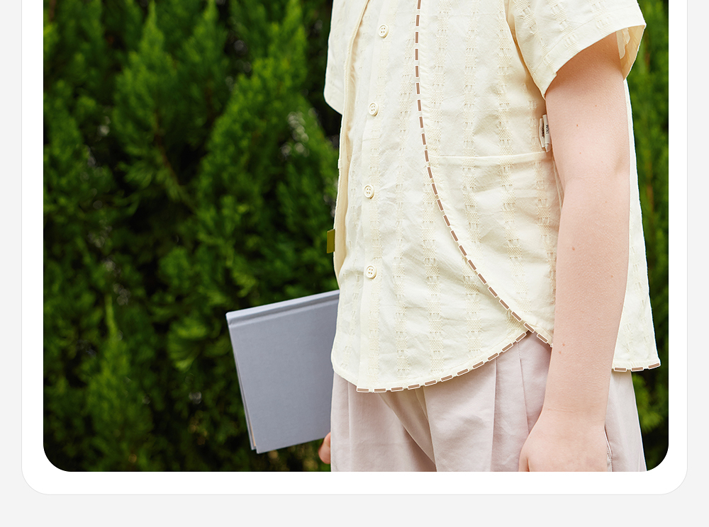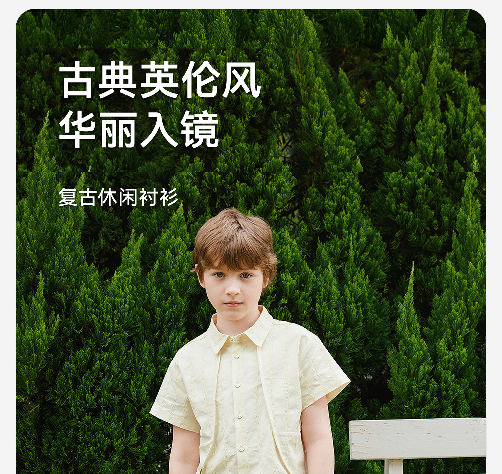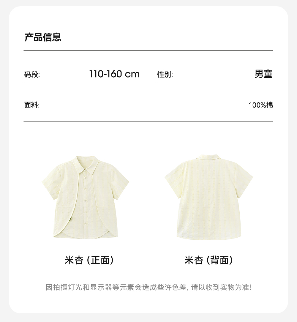 英氏儿童衬衫夏季短袖透气男童上衣休闲百搭纯棉衬衫中大童衣服