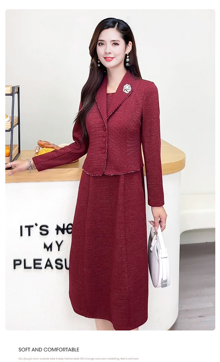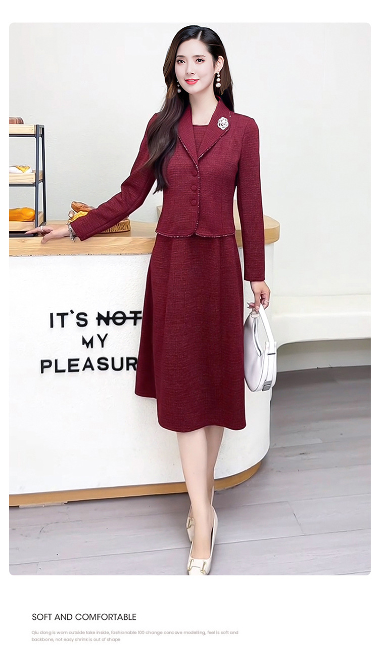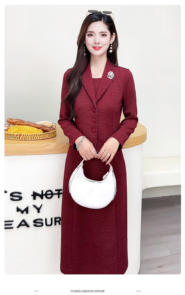 QYM 1C2528-Y连衣裙西装领假两件A字裙收腰裙气质优雅 商品图1