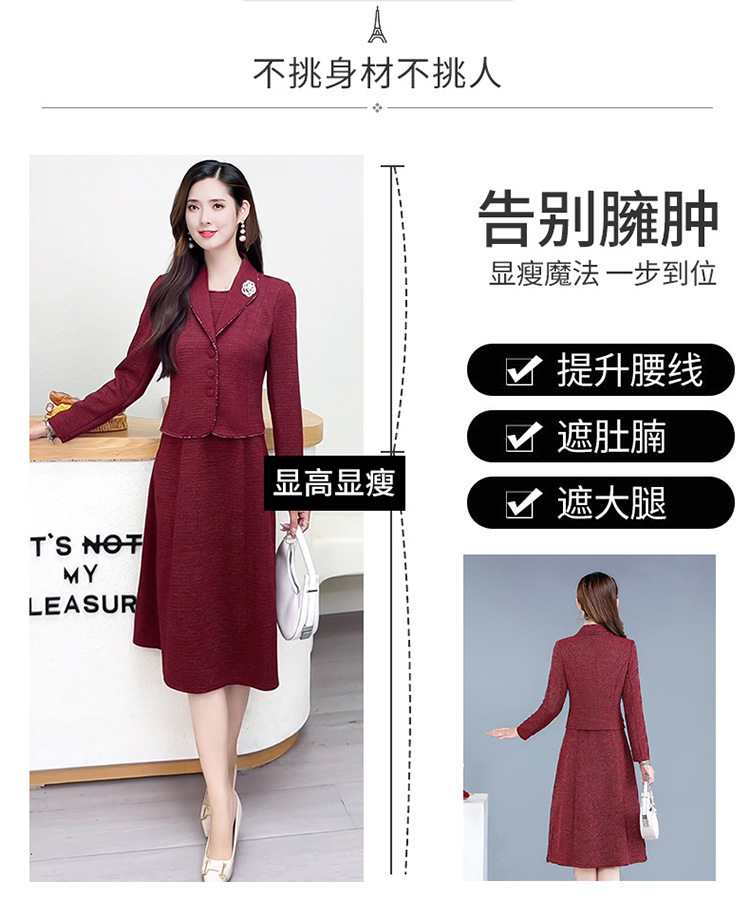 QYM 1C2528-Y连衣裙西装领假两件A字裙收腰裙气质优雅 商品图4