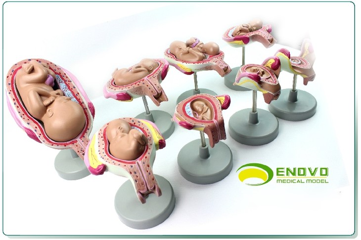 【功能特点】该模型由妊娠胚胎发育过程一、二、三、四、五、六、七个月胚胎和五个月双胞胎等8个模型组成,其中四、五、六、七个月胚胎和五个月双胞胎模型胎儿可以取出,并显示子宫、阴道、胎儿、脐带、胎盘、羊膜腔以及卵巢、输卵管等结构,每个模型均有结构指示标志。