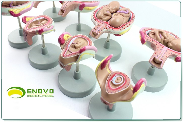 该模型是做工非常的精细,胎儿光滑,可以从子宫内拿出,并且都由支架支撑着,外观十分的美观,材料也是由进口优制塑胶制成,非常耐用,是学习胎儿发育过程的一种很好的直观教学用具。