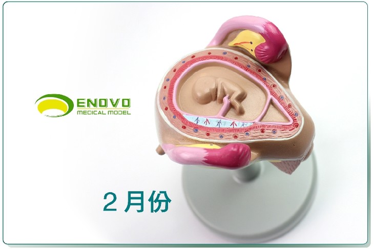 2、妊娠第二个月的胚胎与子宫,胚胎初具人形,这一逼真的模型展示了孕期第2个月的人体胎儿的发育情况且和胎儿位于子宫中的自然位置。胎儿尺寸:自然大,高9CM,宽11CM,厚:8CM;