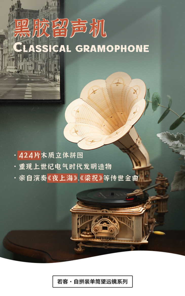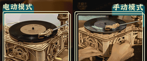 另一款拼好的留声机还能播放黑胶唱片!好看得有种复古年代感。