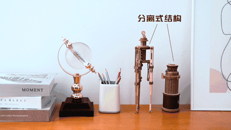 三脚架可与望远镜分开,两种摆法在桌上,都特别好看。