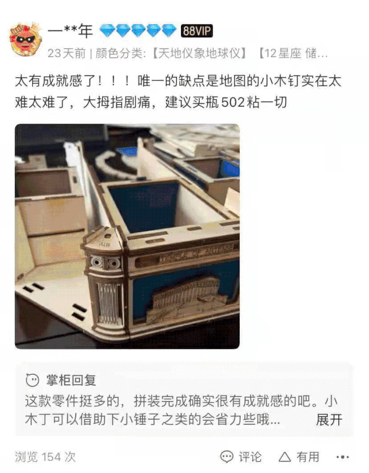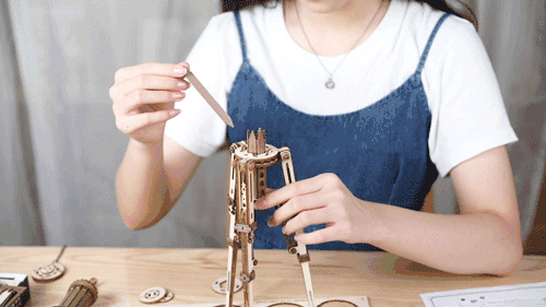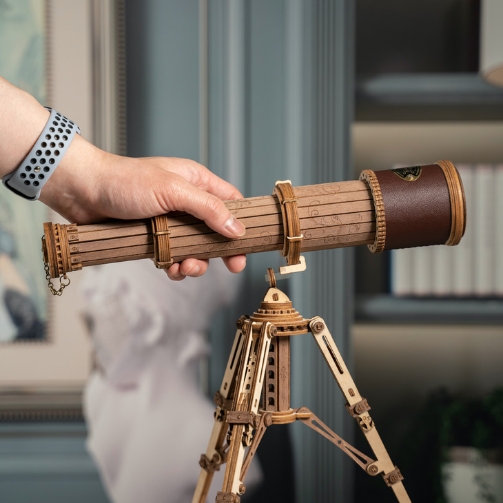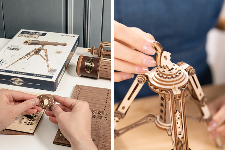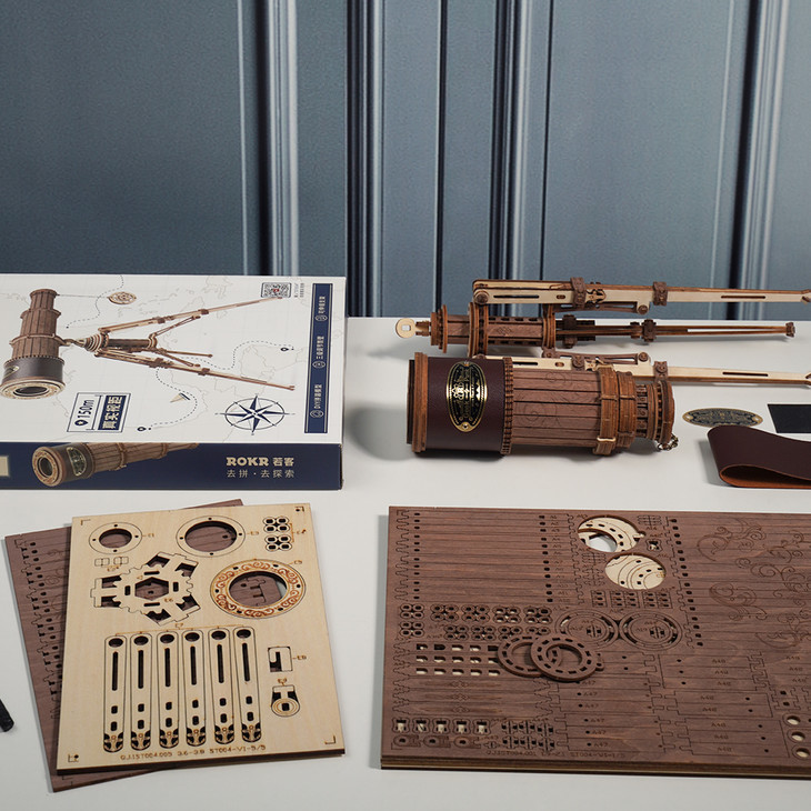 你会发现,从自己手里,一块块木片神奇般得变成望远镜的镜筒、放上镜片后还可以望远、三脚架拼好竟可以伸缩……令人愉悦的多巴胺简直是直线上升。