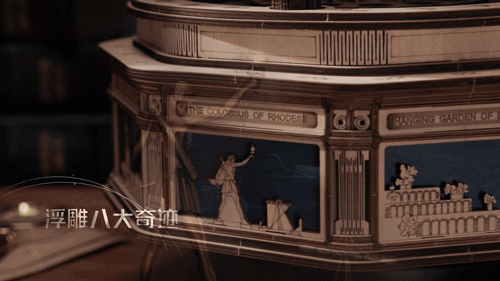 底座是浮雕的八大奇迹:秦始皇兵马俑、金字塔、亚历山大灯塔……每一次发现都有未知的探索!