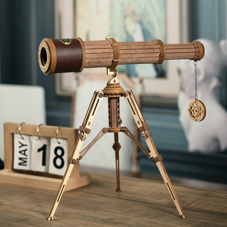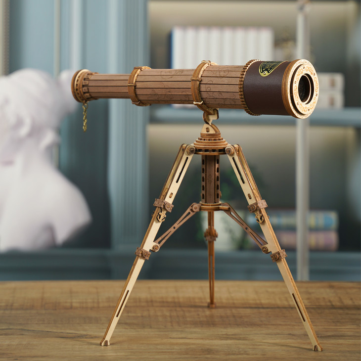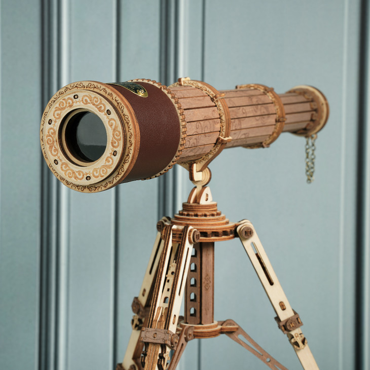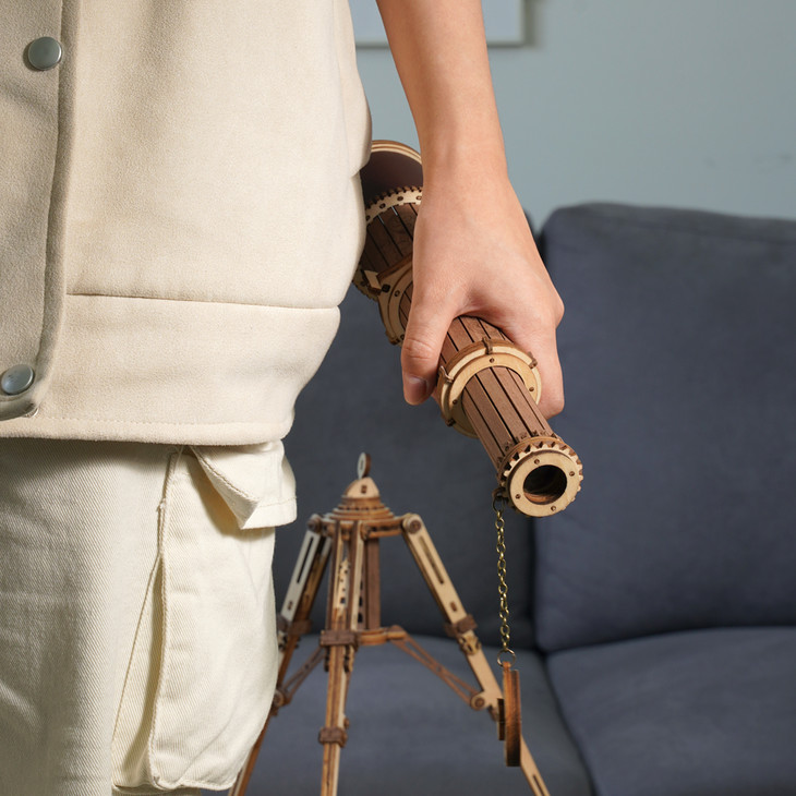 拼装完成后的单筒望远镜,格调十足。