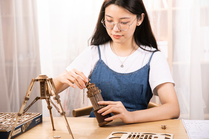 哪怕是我这种第一次接触木质拼装的,拼完都有种治愈感,夏日烦闷、或者工作压力大,玩它能让心情一下子平静。