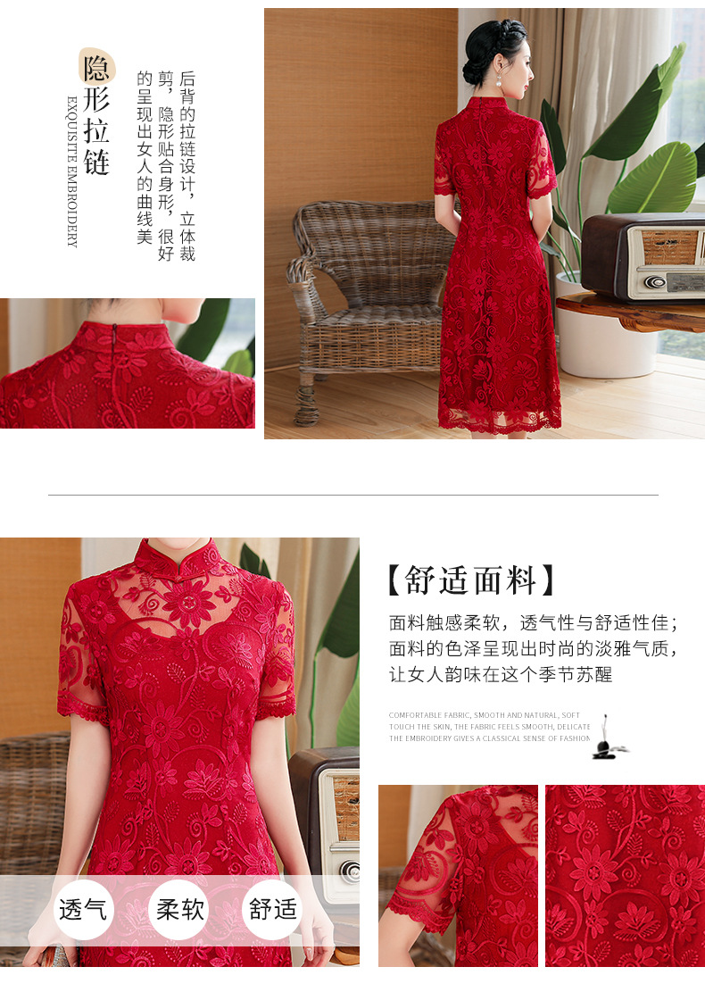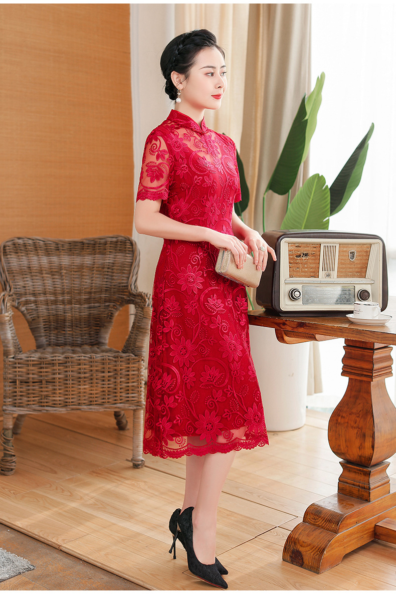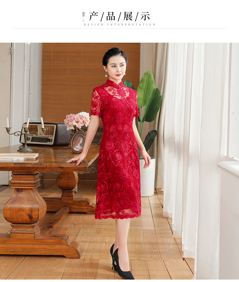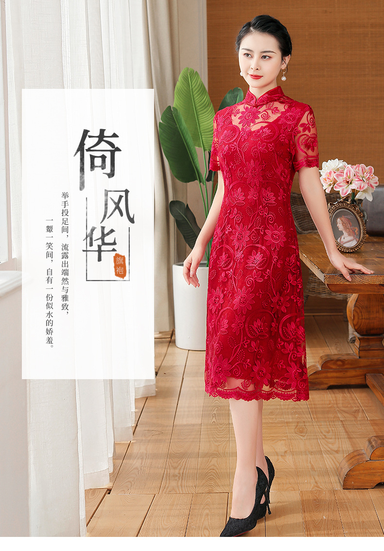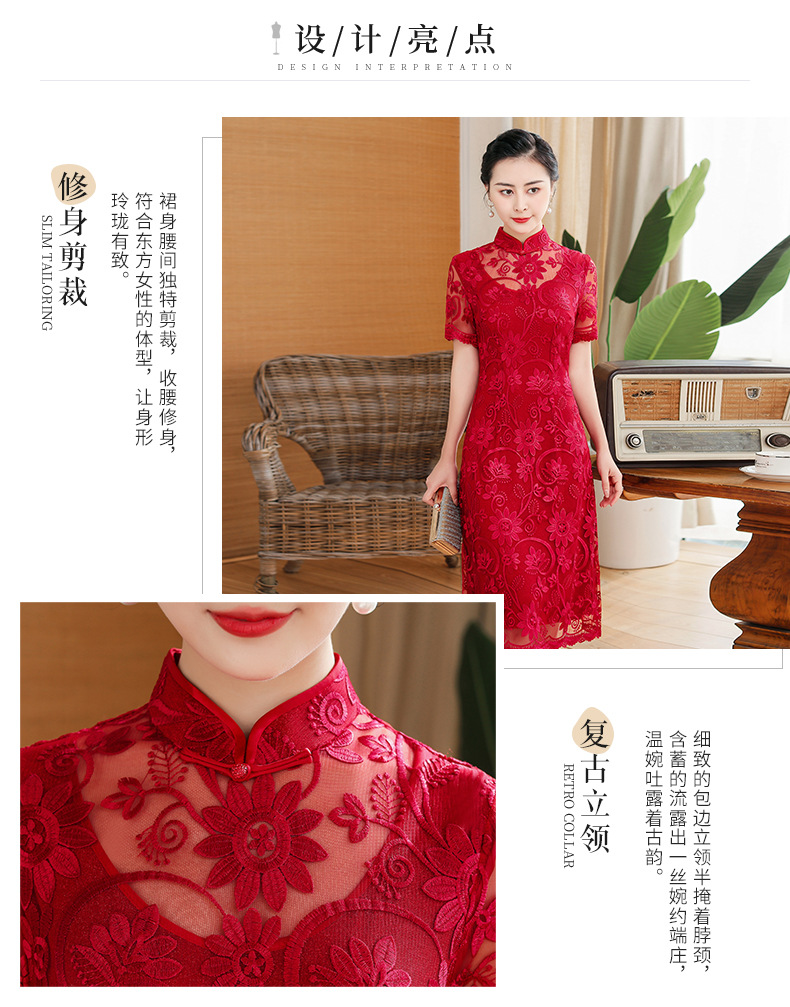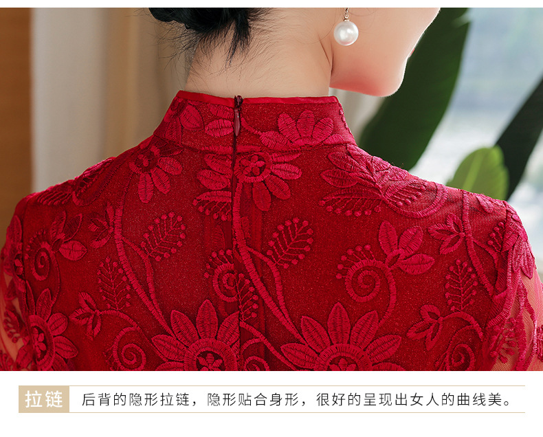 上海旗袍厂TZRY-202105新款复古优雅大气宴会礼服 典雅修身刺绣蕾丝改良旗袍连衣裙