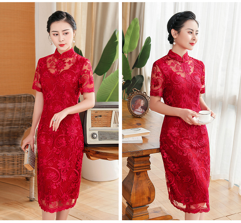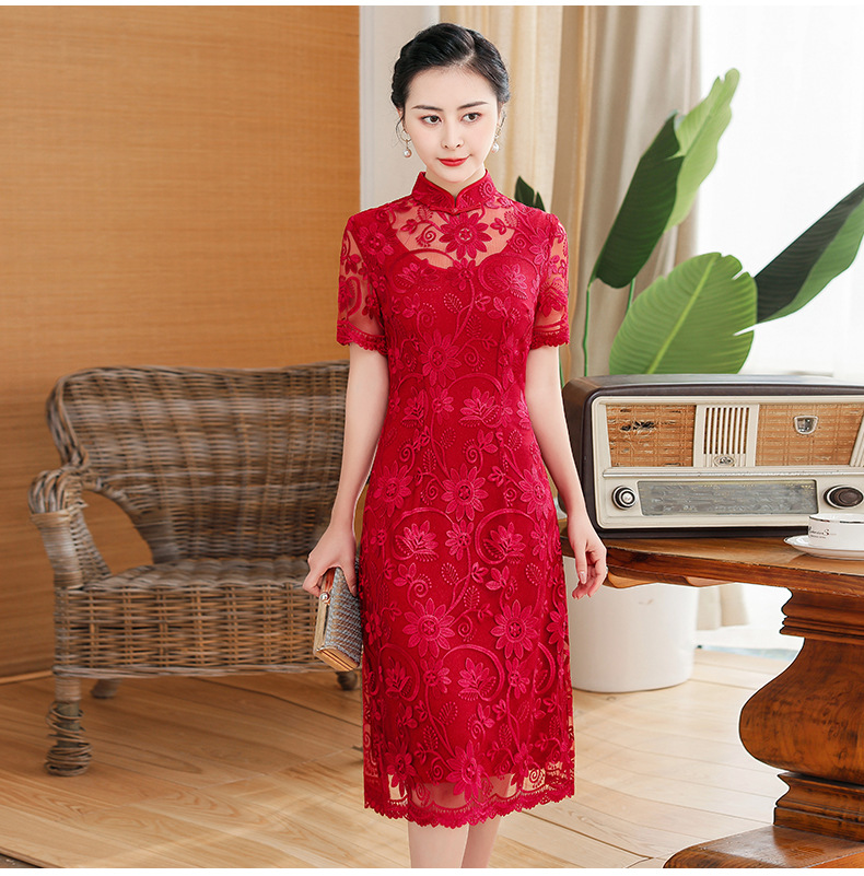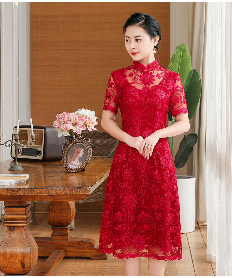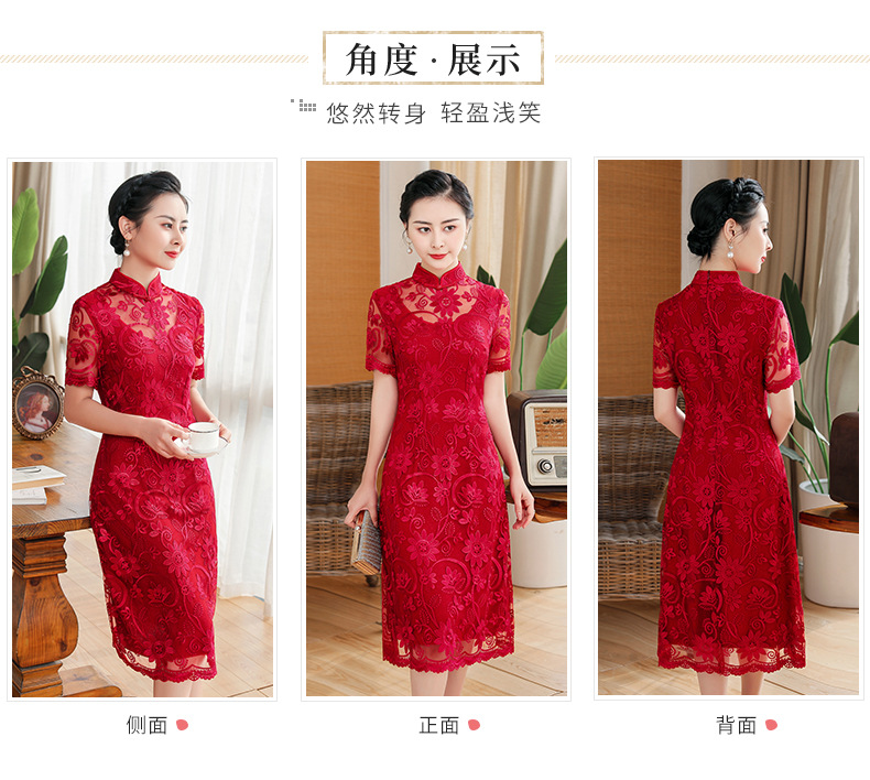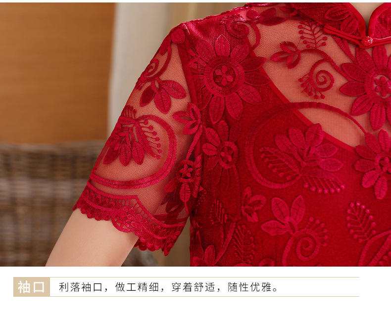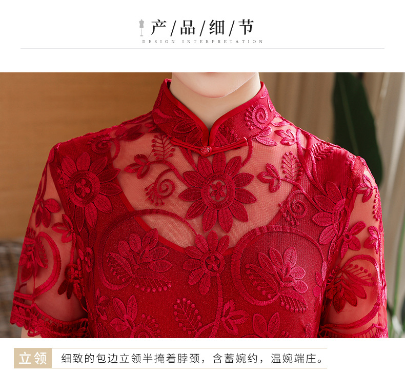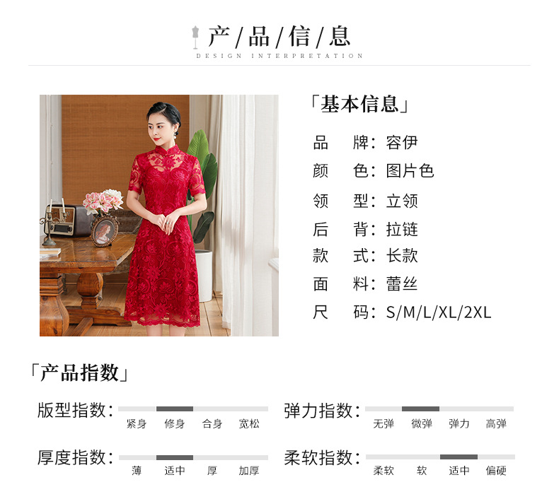 上海旗袍厂TZRY-202105新款复古优雅大气宴会礼服 典雅修身刺绣蕾丝改良旗袍连衣裙
