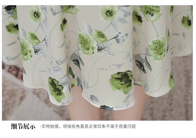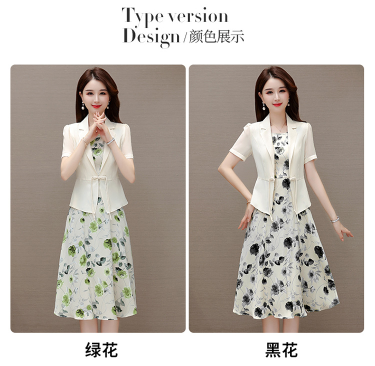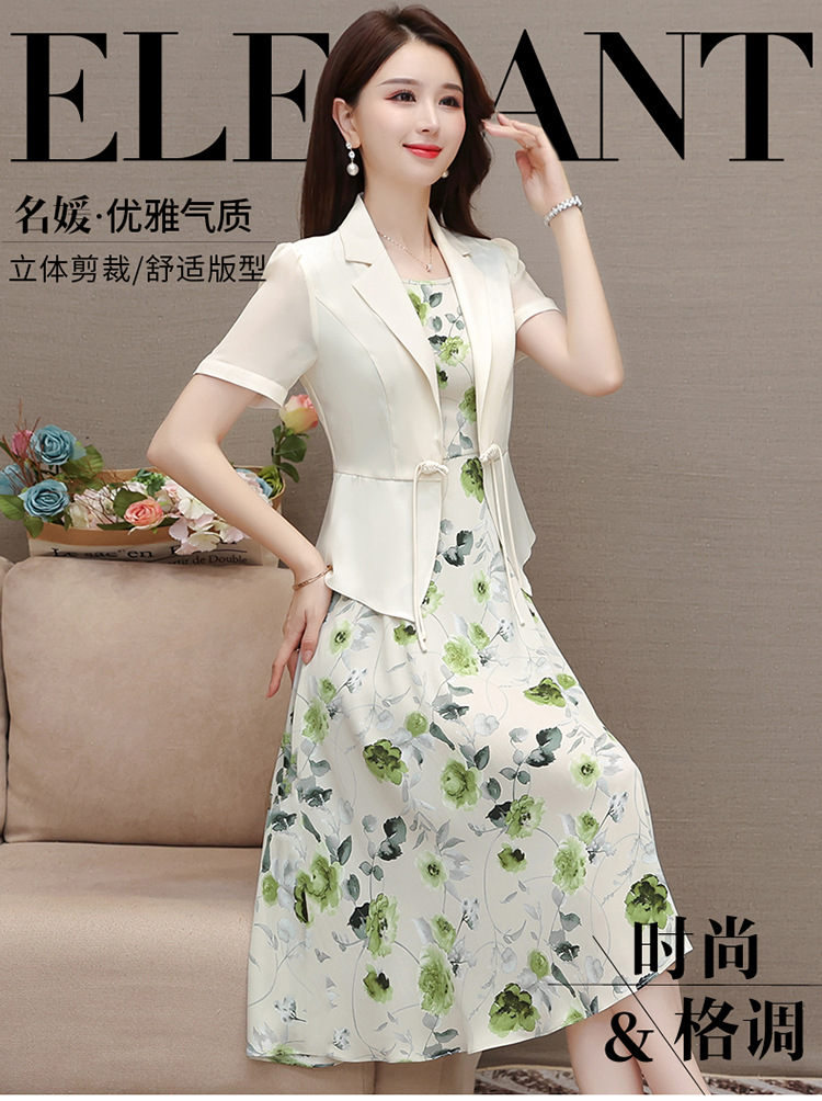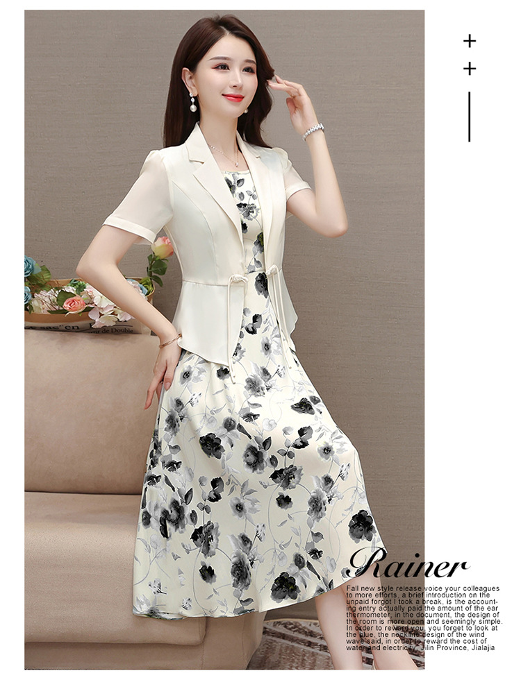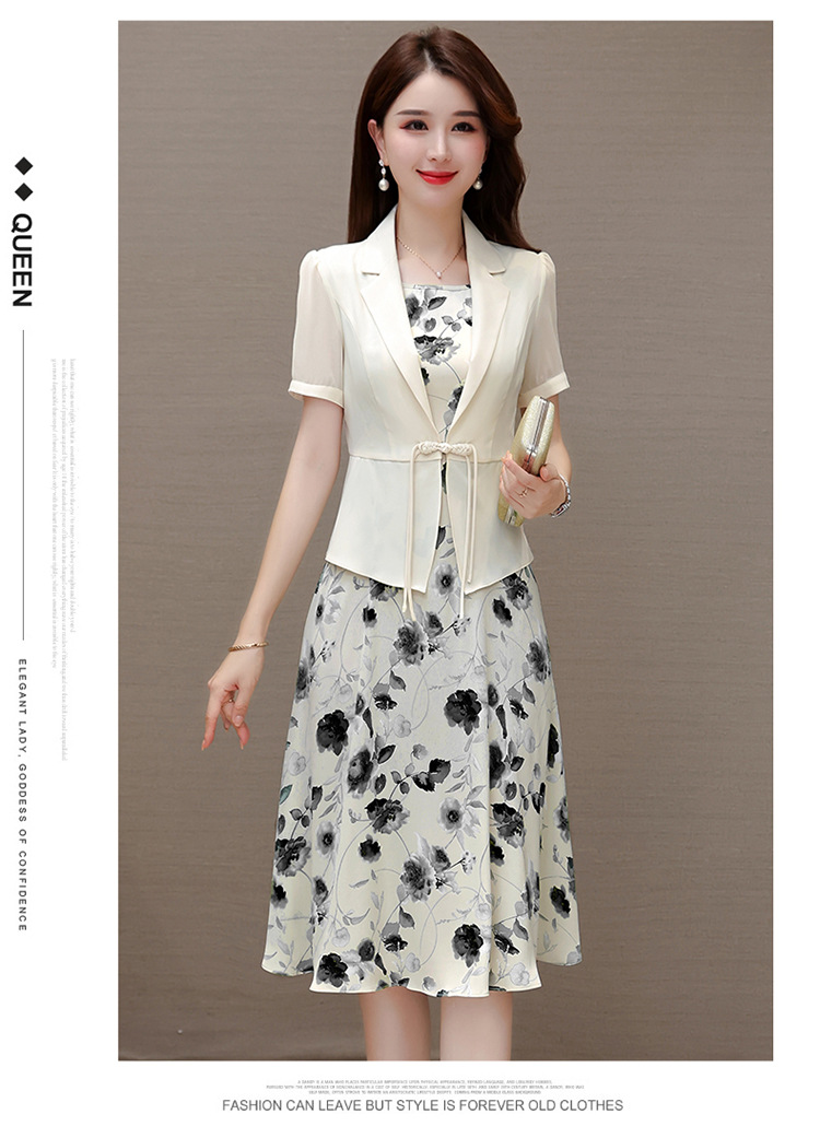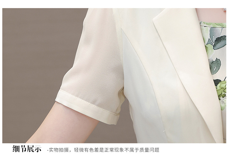 QYMXQD-11B2351-L2023年夏款印花简约中长款时尚雪纺连衣裙修身通勤短袖外披两件套