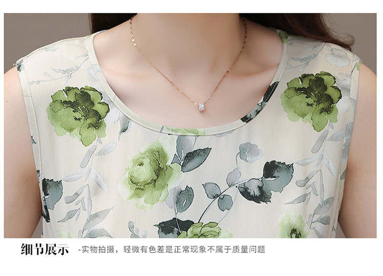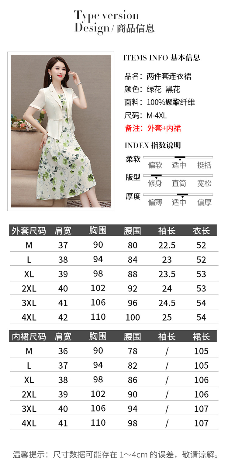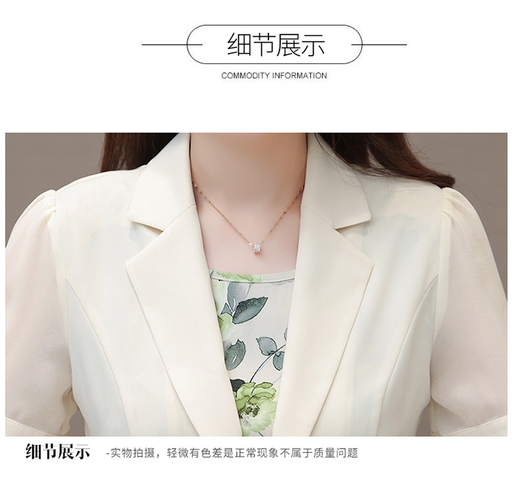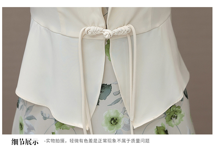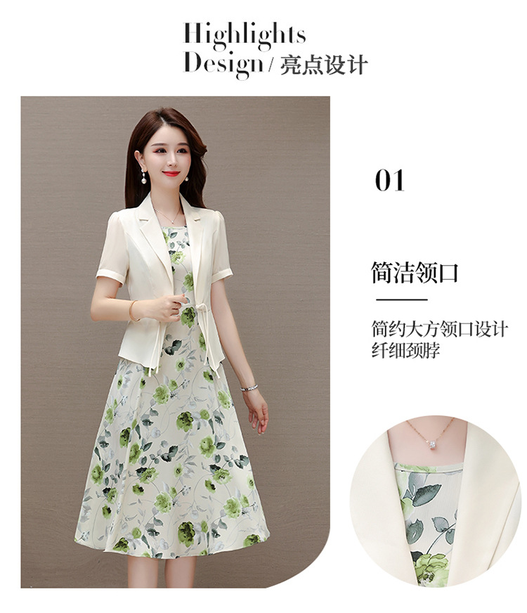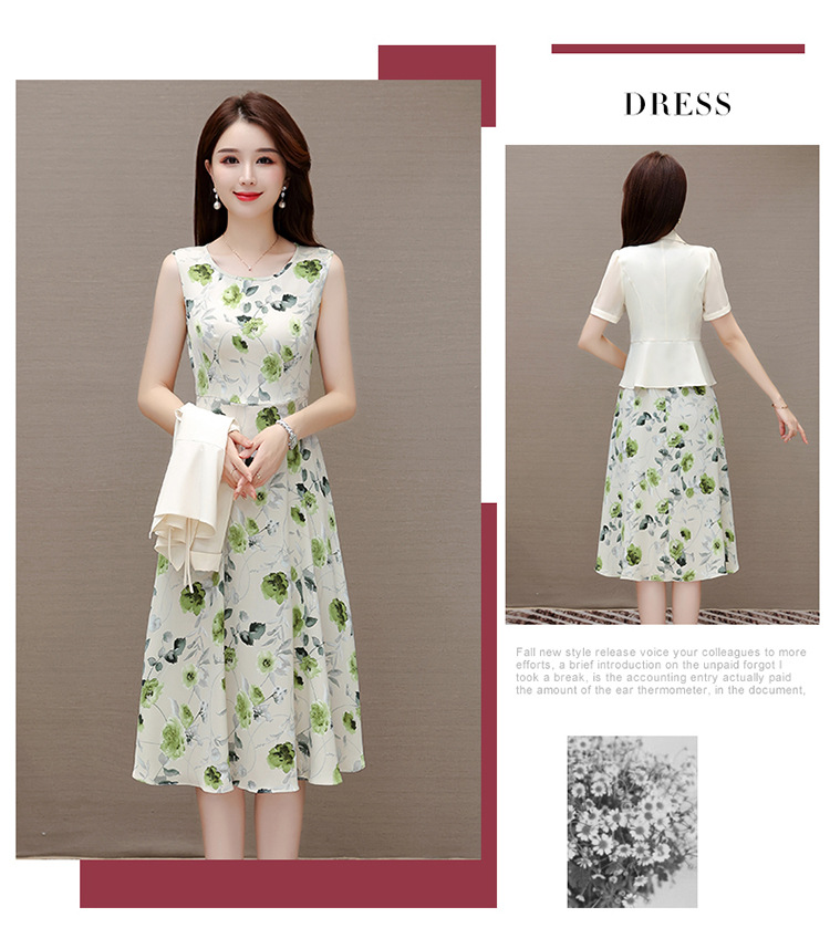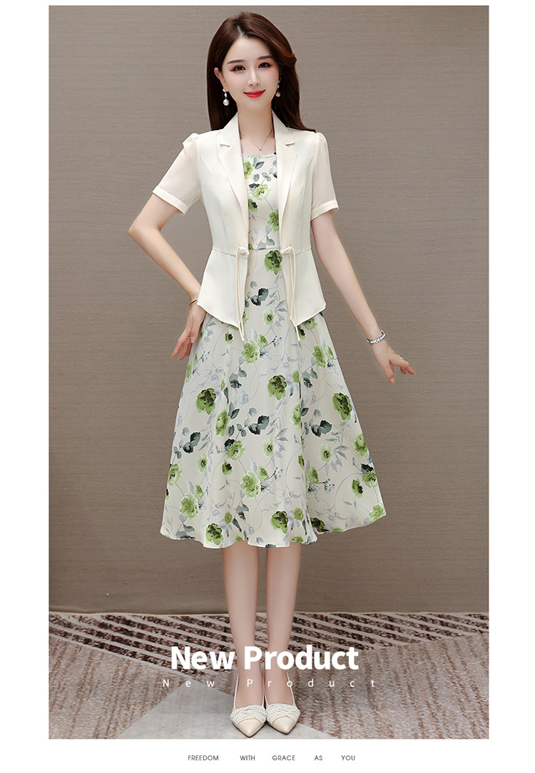 QYMXQD-11B2351-L2023年夏款印花简约中长款时尚雪纺连衣裙修身通勤短袖外披两件套