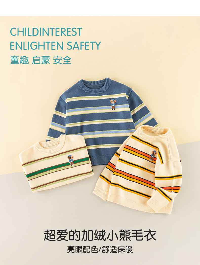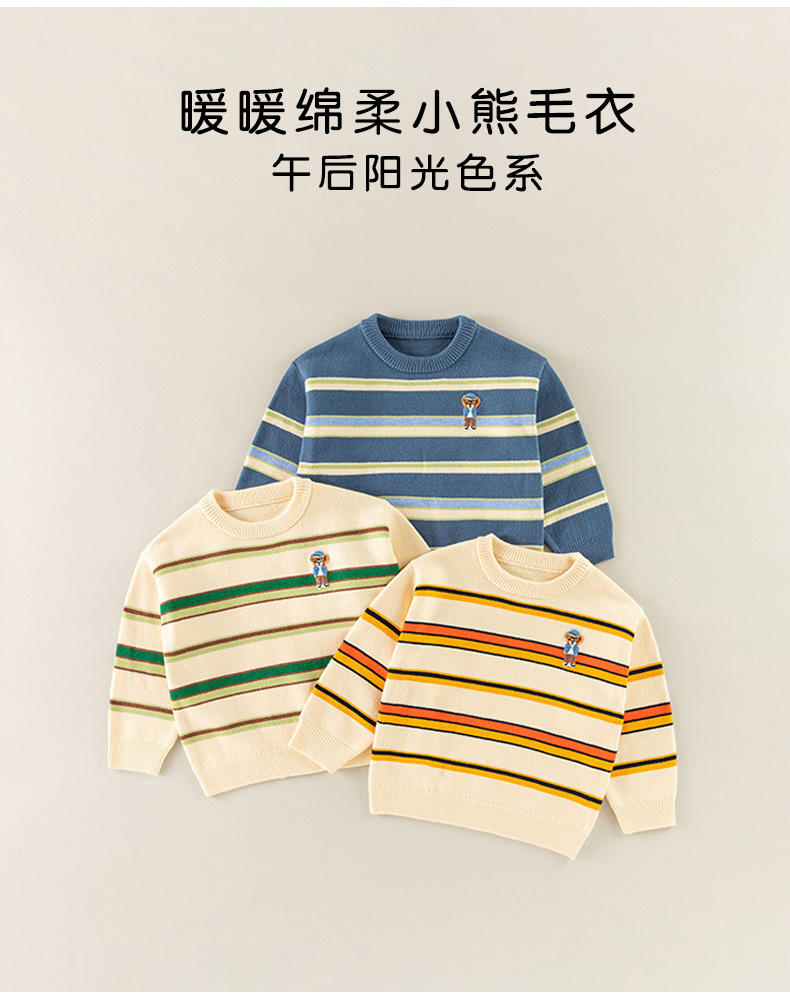 【超爱的小熊毛衣,亮眼配色,舒适保暖】儿童毛衣男童 秋冬韩版小熊针织衫 宝宝毛衫 女童婴儿a类上衣-QQ