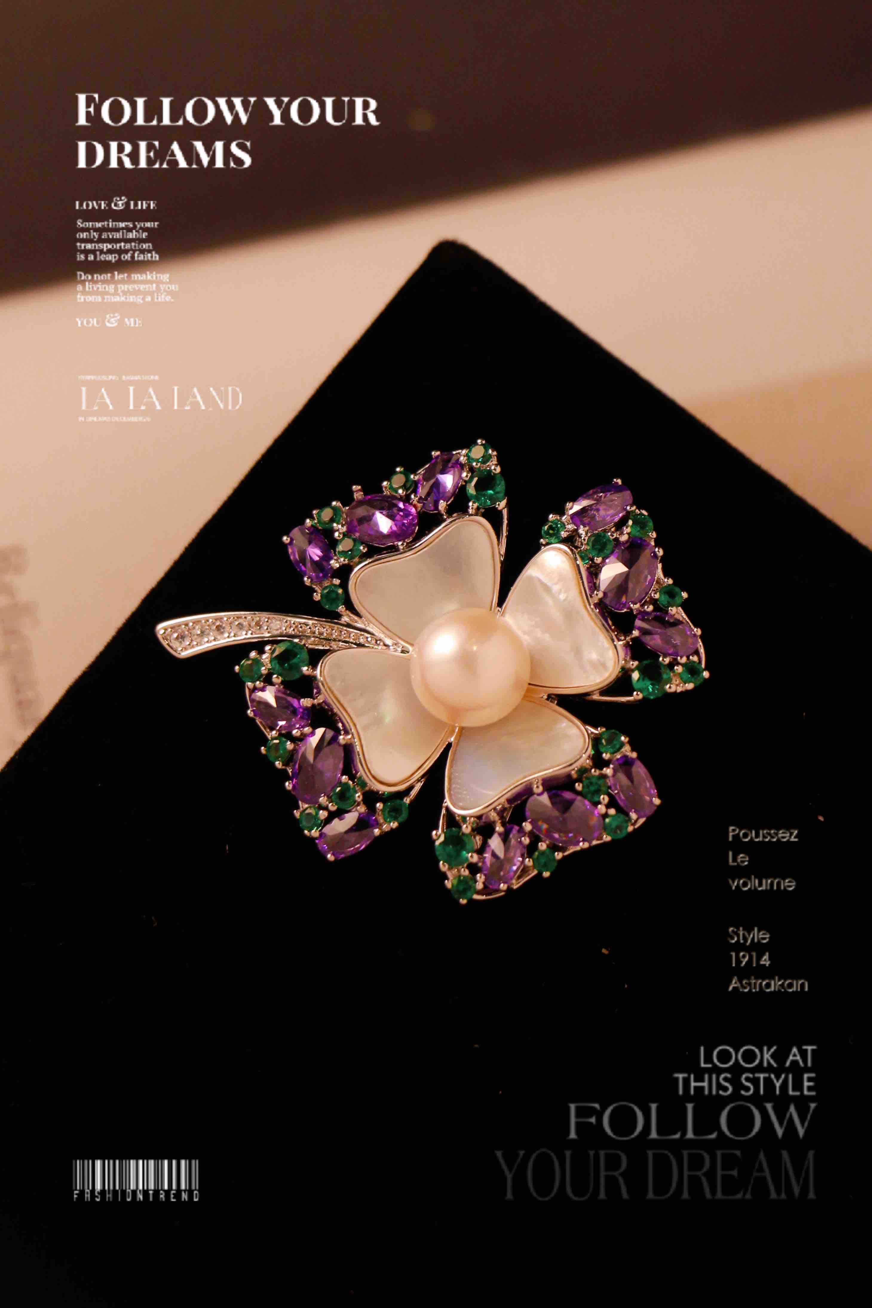 甄珠贝 24F/W 【秘境蝶生】vintage高定古典风系列胸针 极光淡水珍珠《四叶草》
