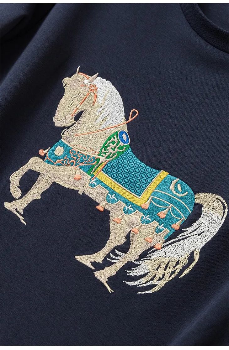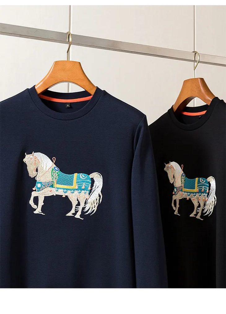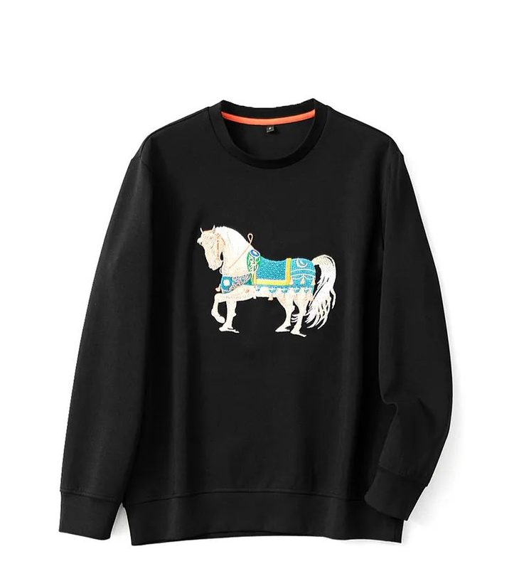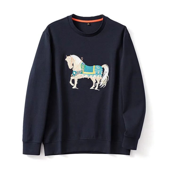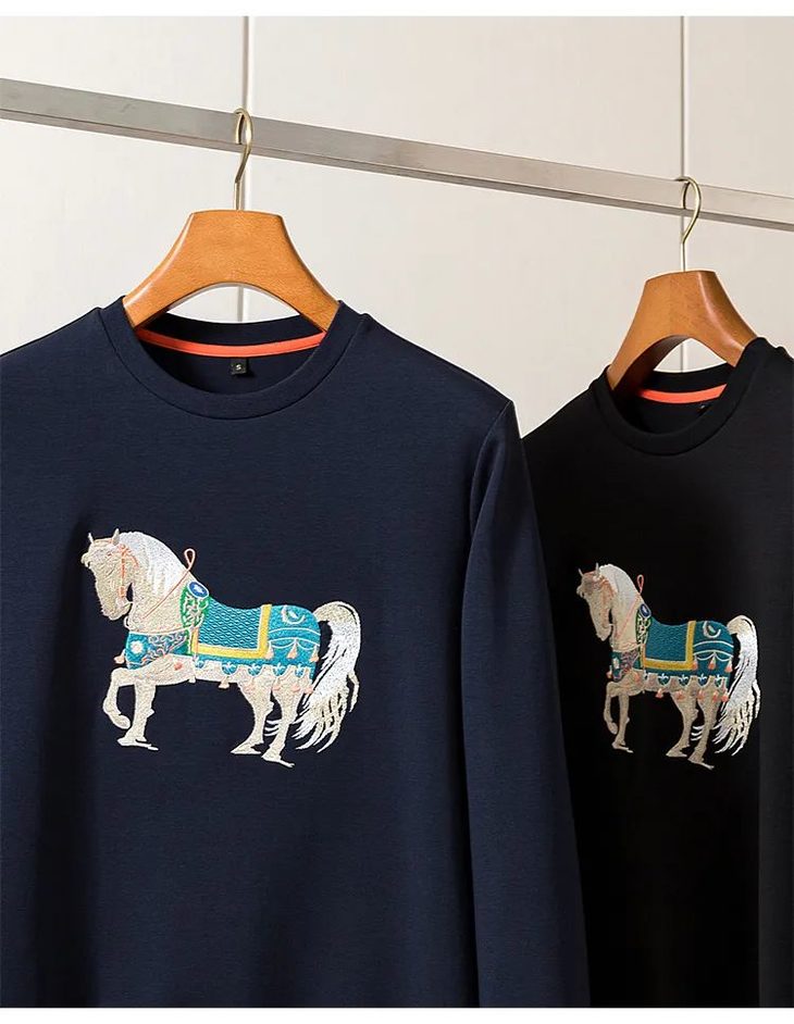 高端30W针唐三彩刺绣液氨工艺情侣卫衣