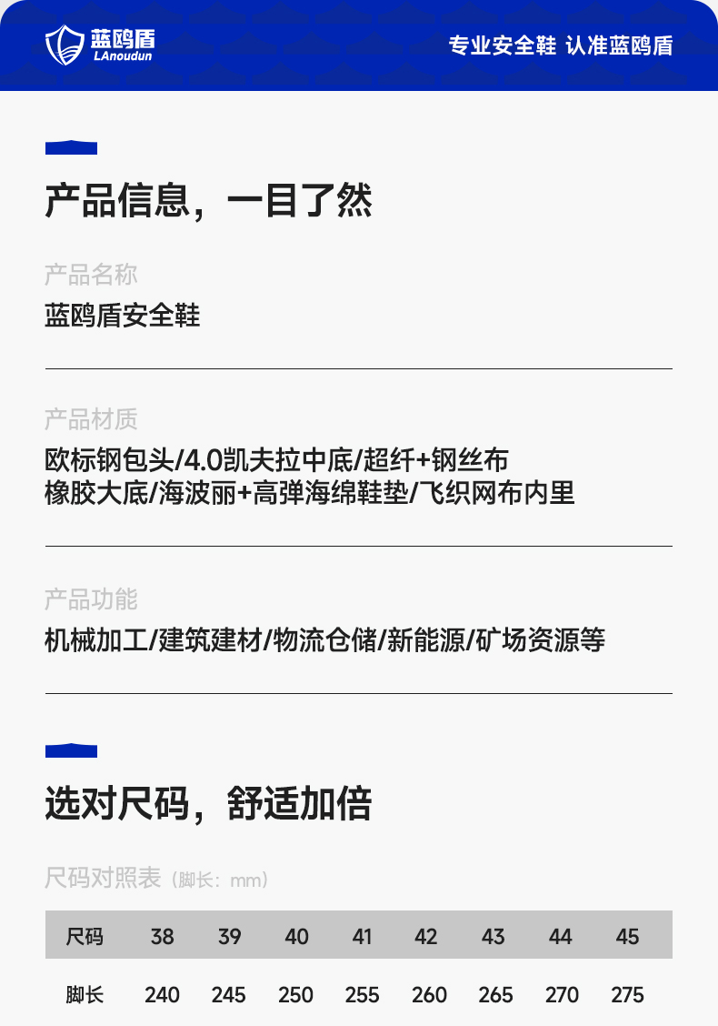 蓝鸥盾新款劳保鞋防砸防刺穿4.0凯夫拉中底橡胶底耐磨高帮四季款