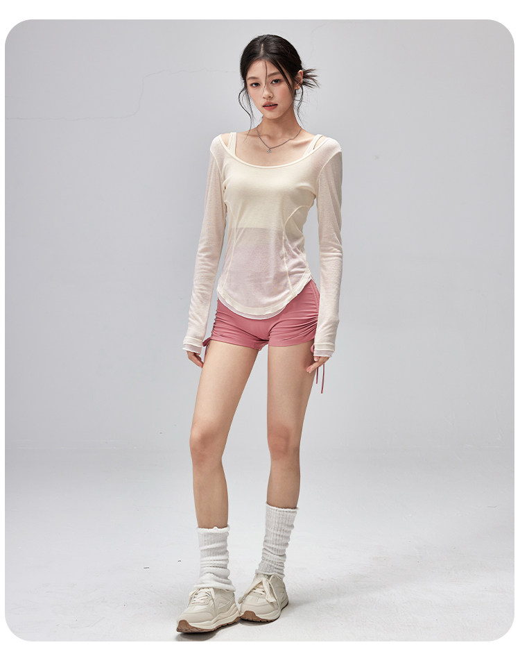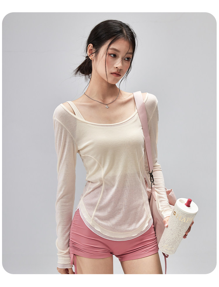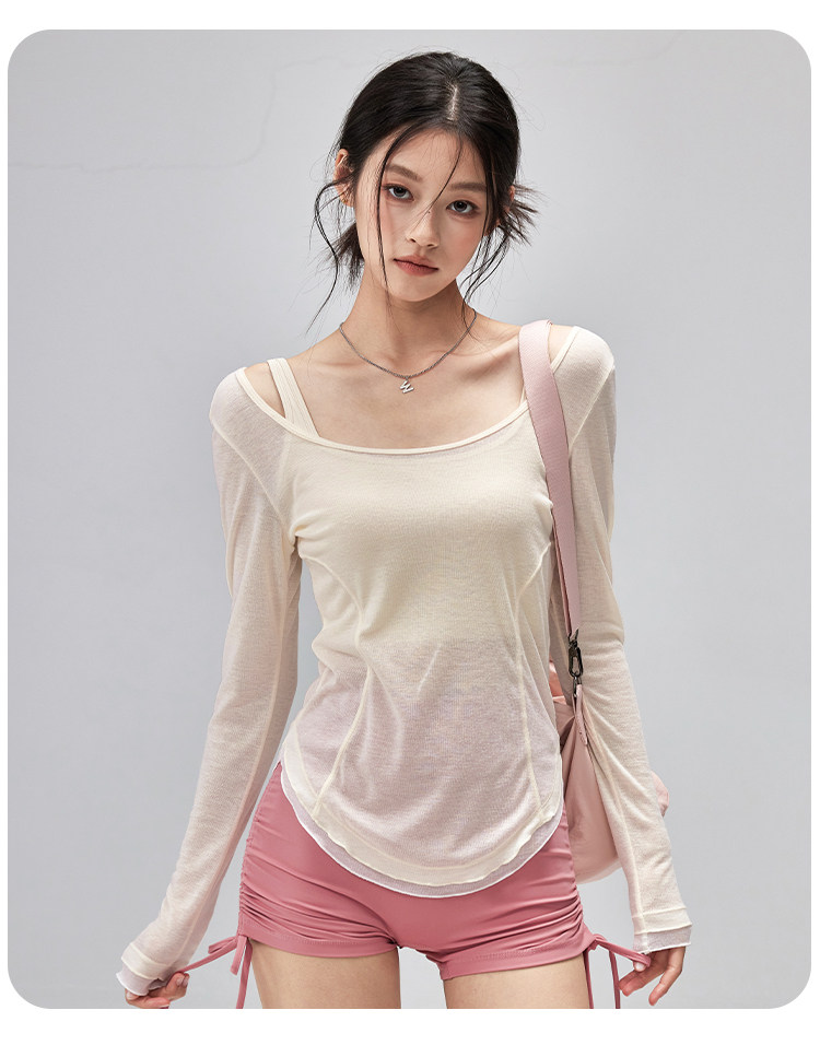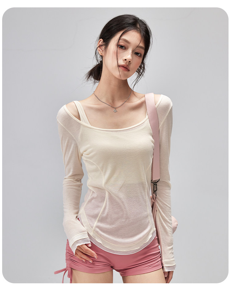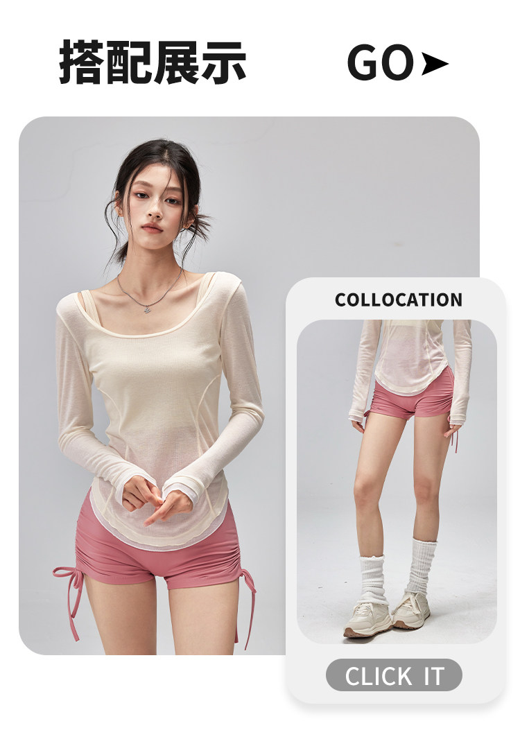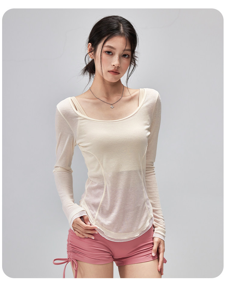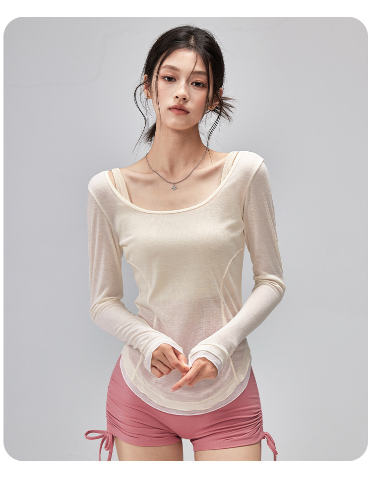 跃牌【美西西系列】性感U领露背绑带修身垂顺轻薄瑜伽服运动罩衫CX-119