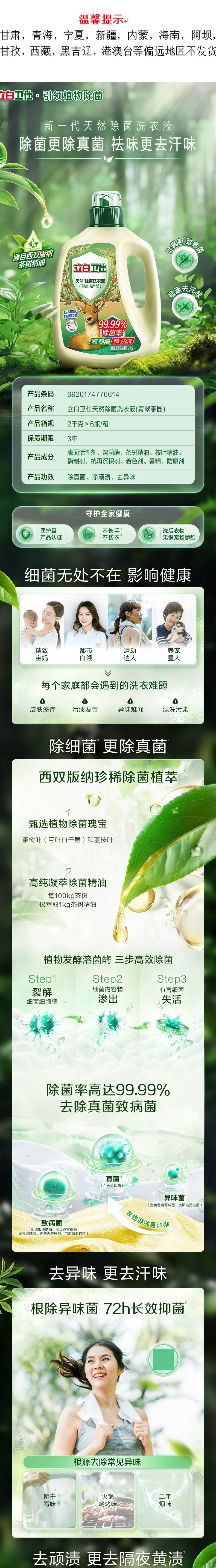 立白 卫仕天然除菌洗衣液(青翠茶园)2kg 6920174776614