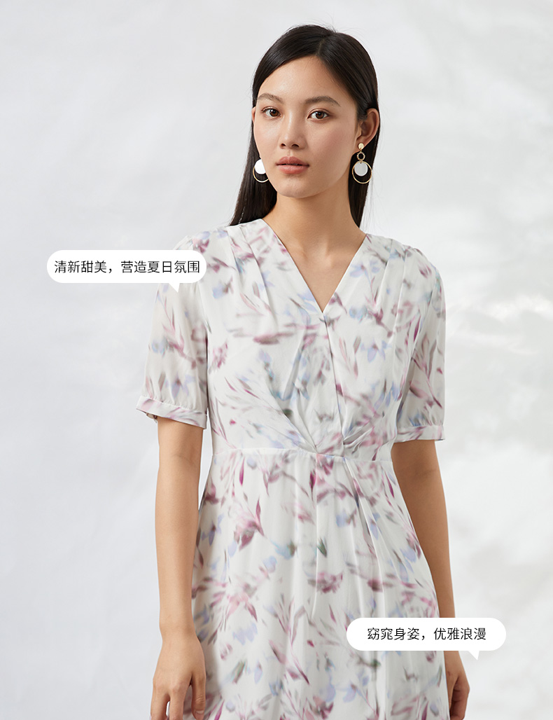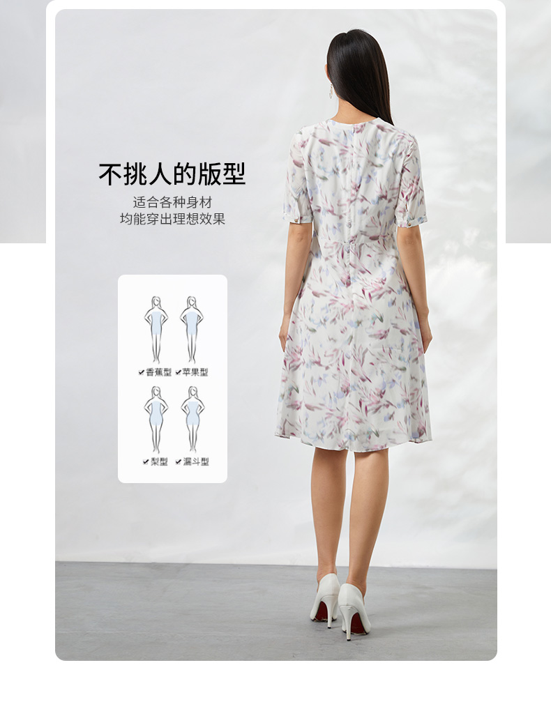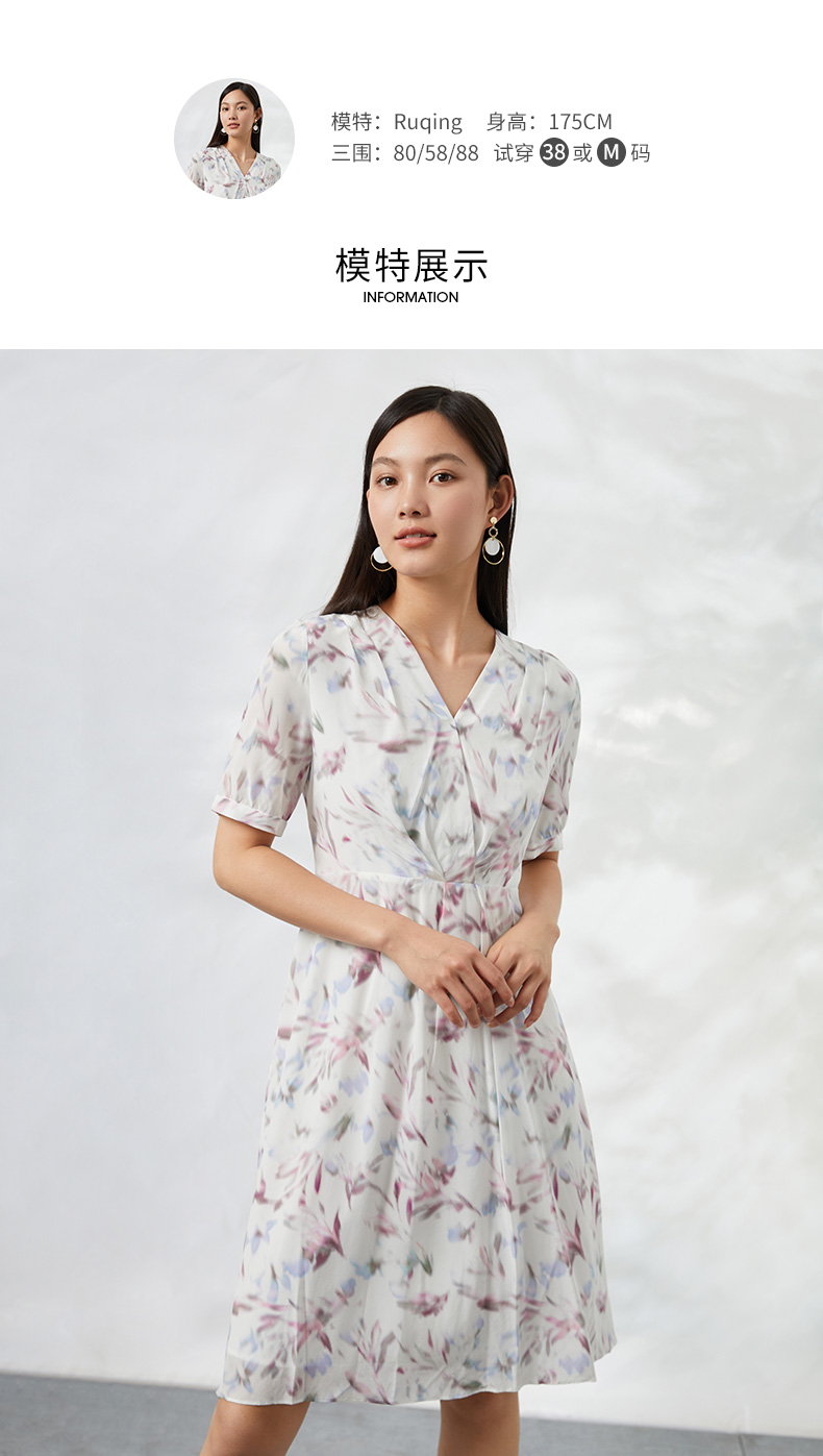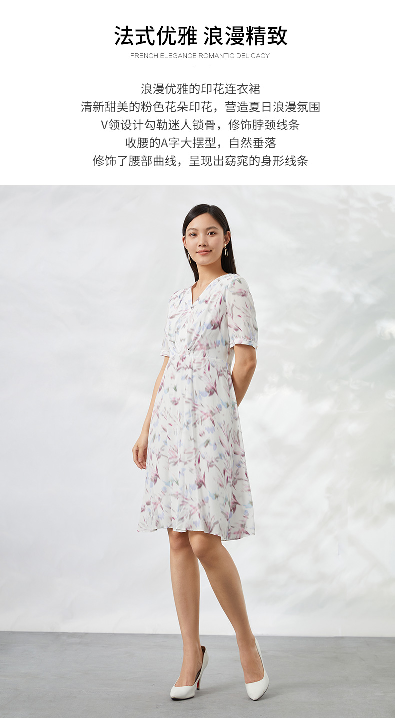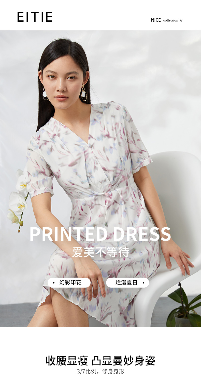 EITIE爱特爱夏季新款印花100%桑蚕丝连衣裙6607333