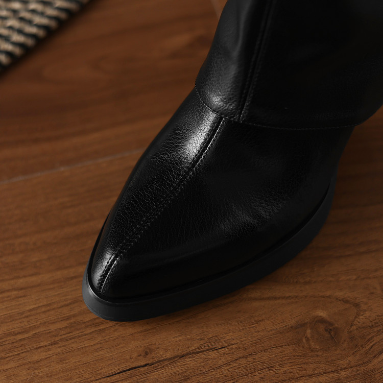 【预售7天】真皮尖头粗跟高跟显瘦靴女新款两穿可拆管加绒长筒靴短靴单靴LD&7448