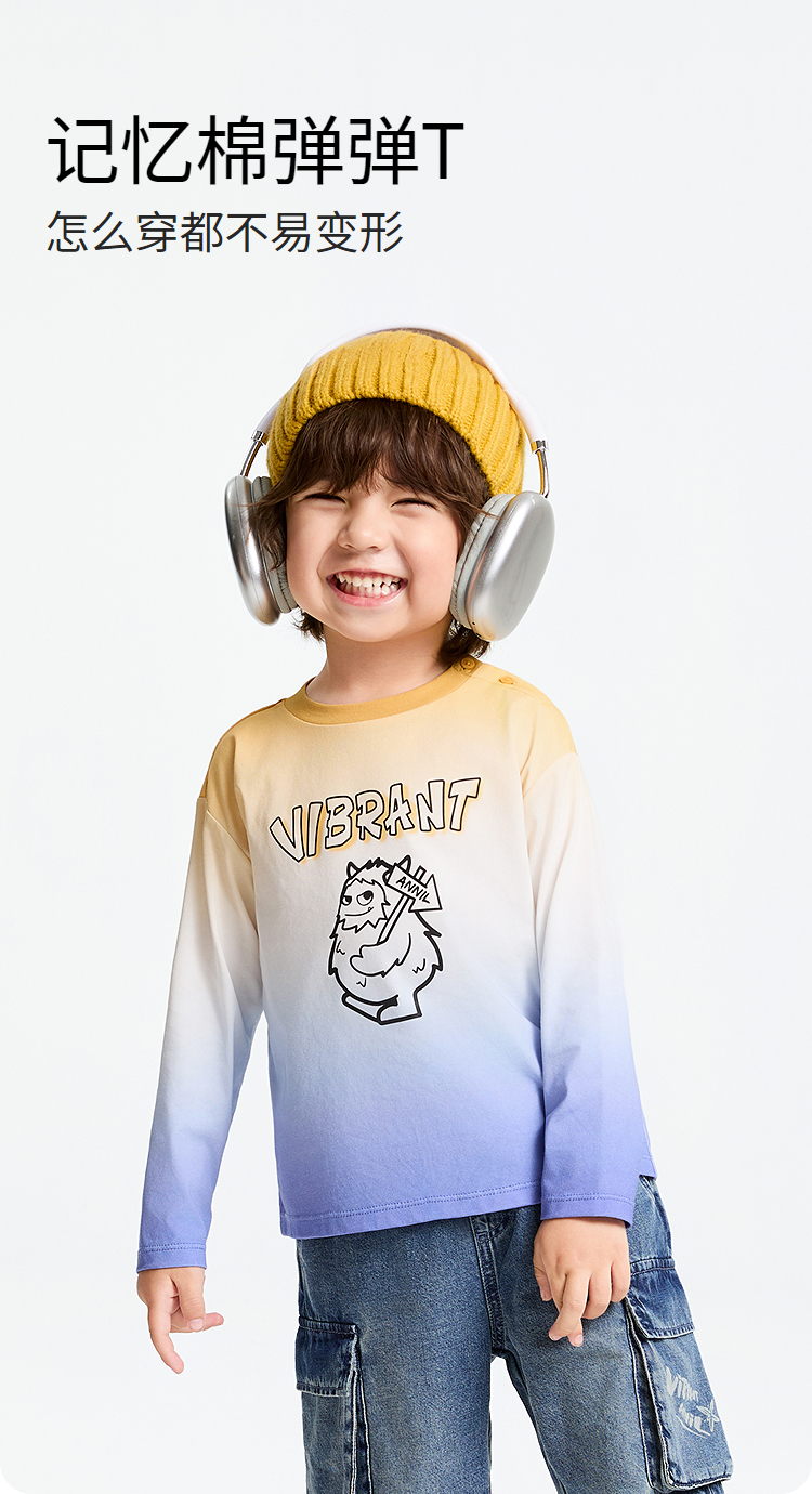 男童圆领SORONA长袖T恤春季新款安奈儿童装实体店同款XB511556