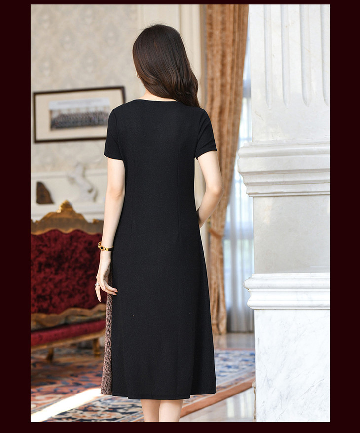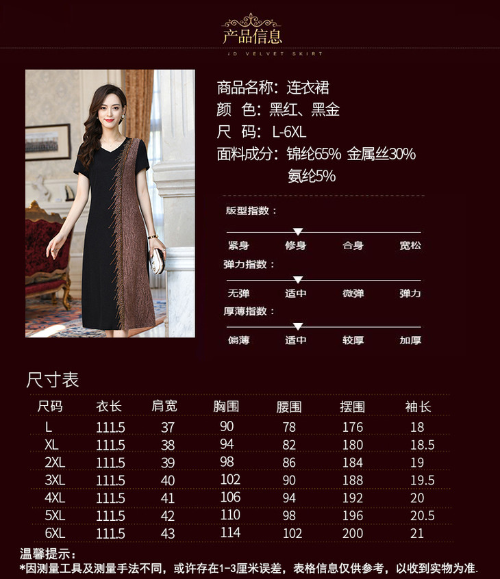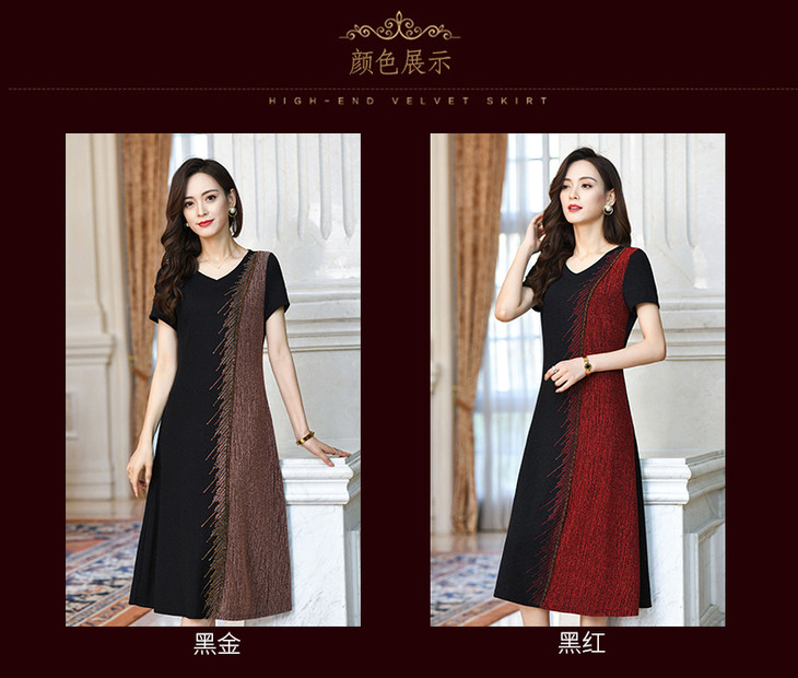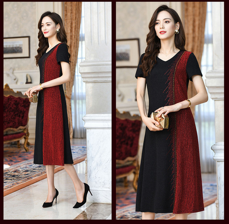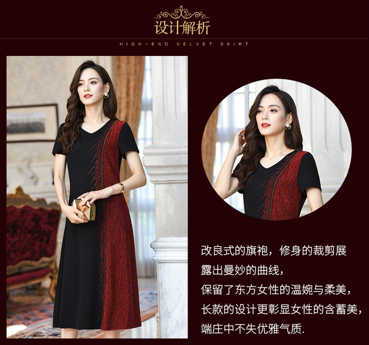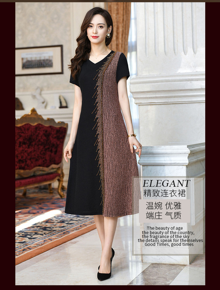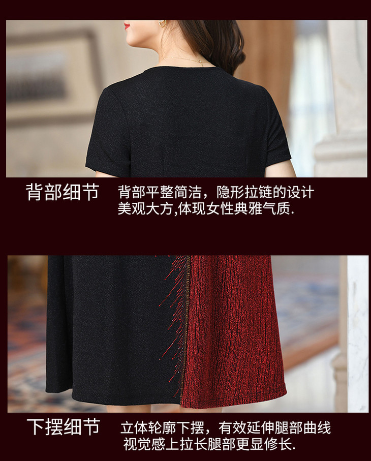 YA 6104连衣裙中年妈妈装烫钻修身显瘦气质