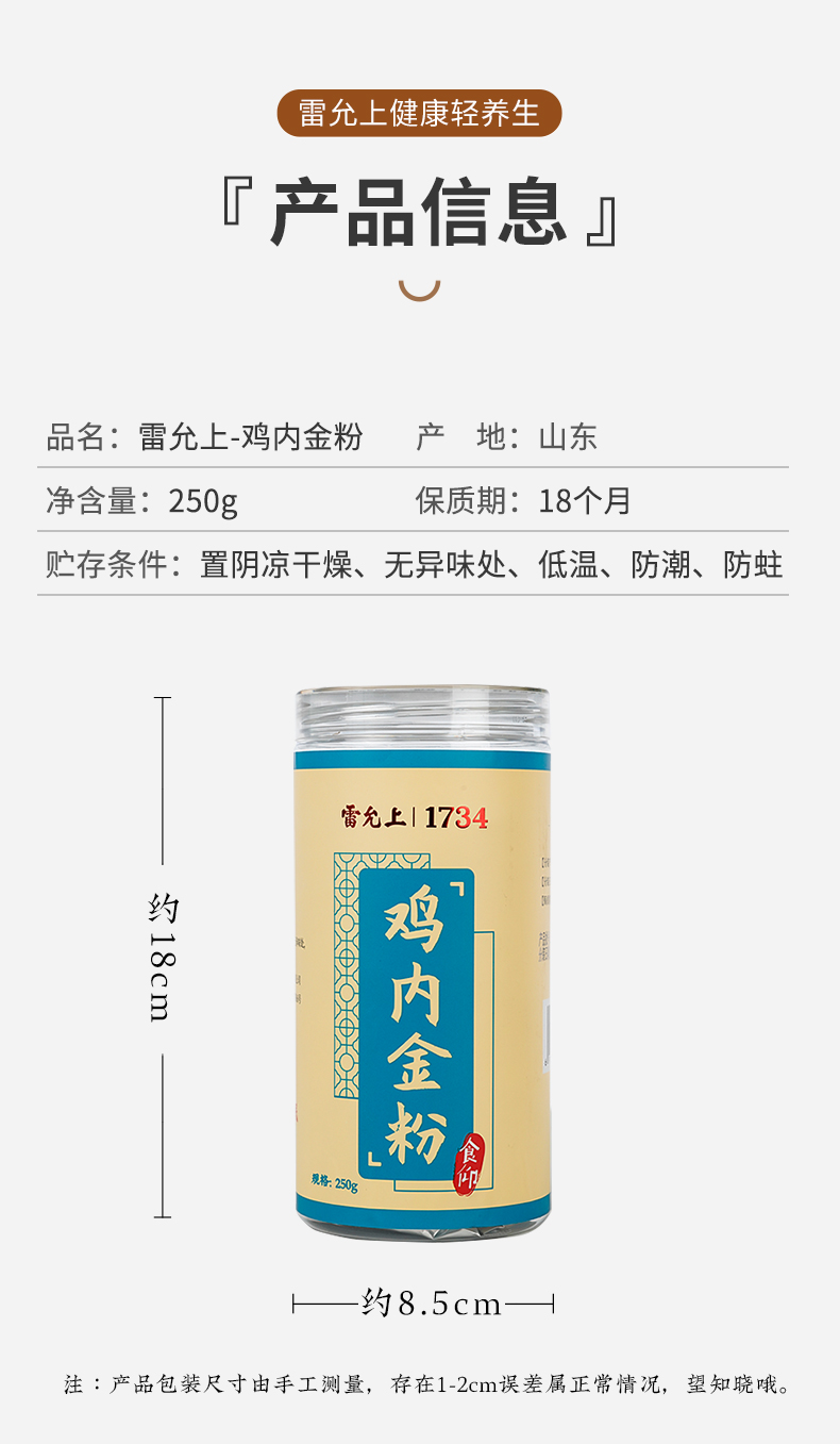 雷允上直营 | 鸡内金粉250g/罐 低温粉碎成粉细腻 可炒熟婴幼小儿童成人冲饮