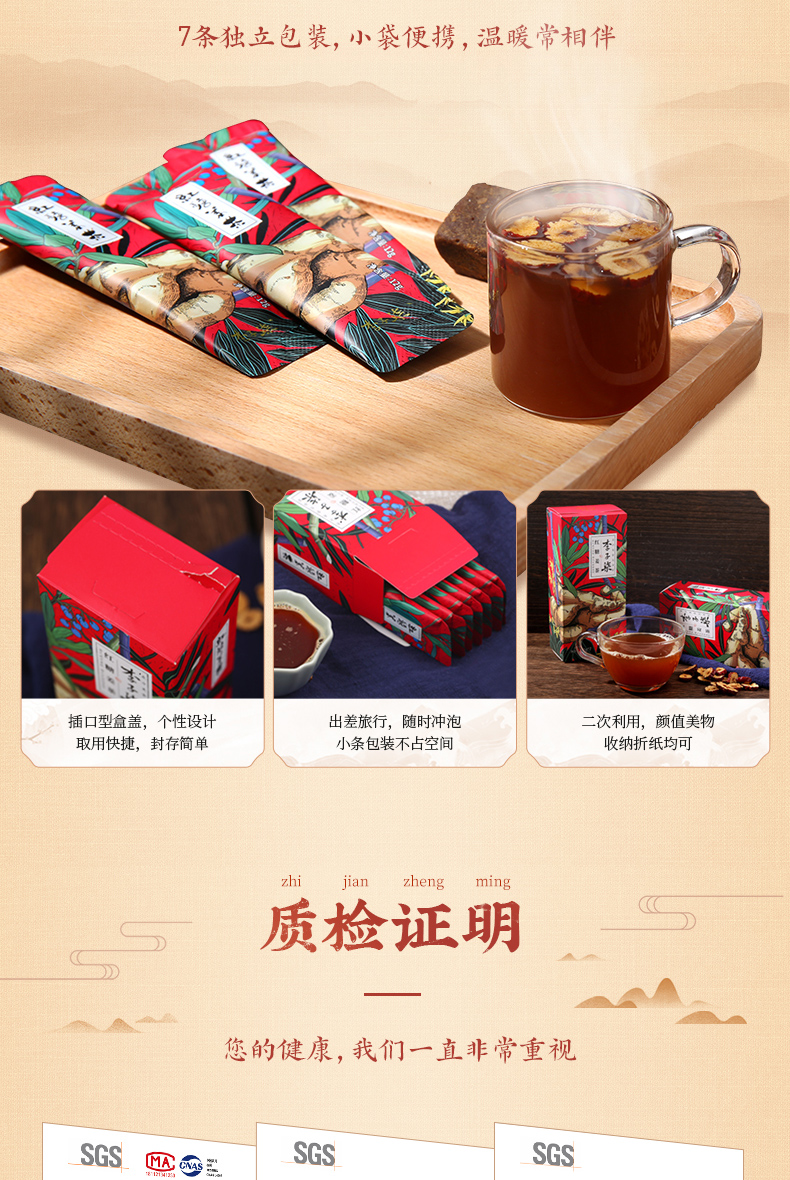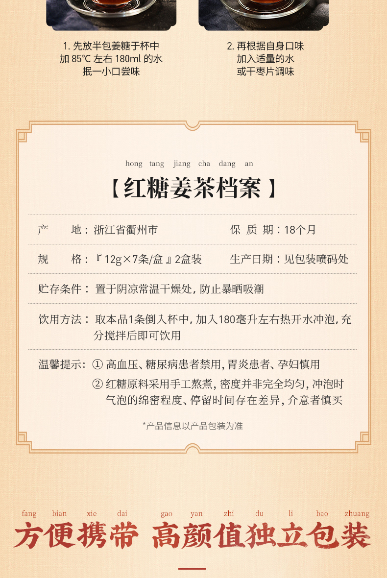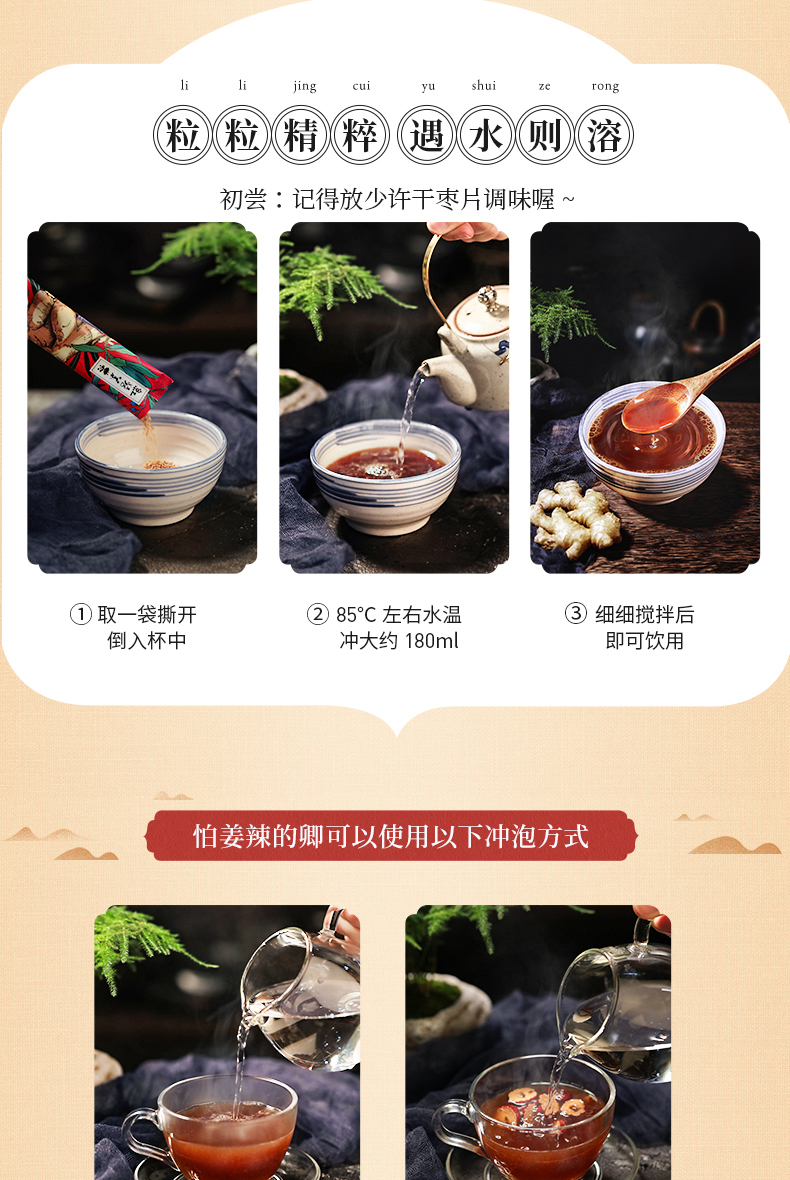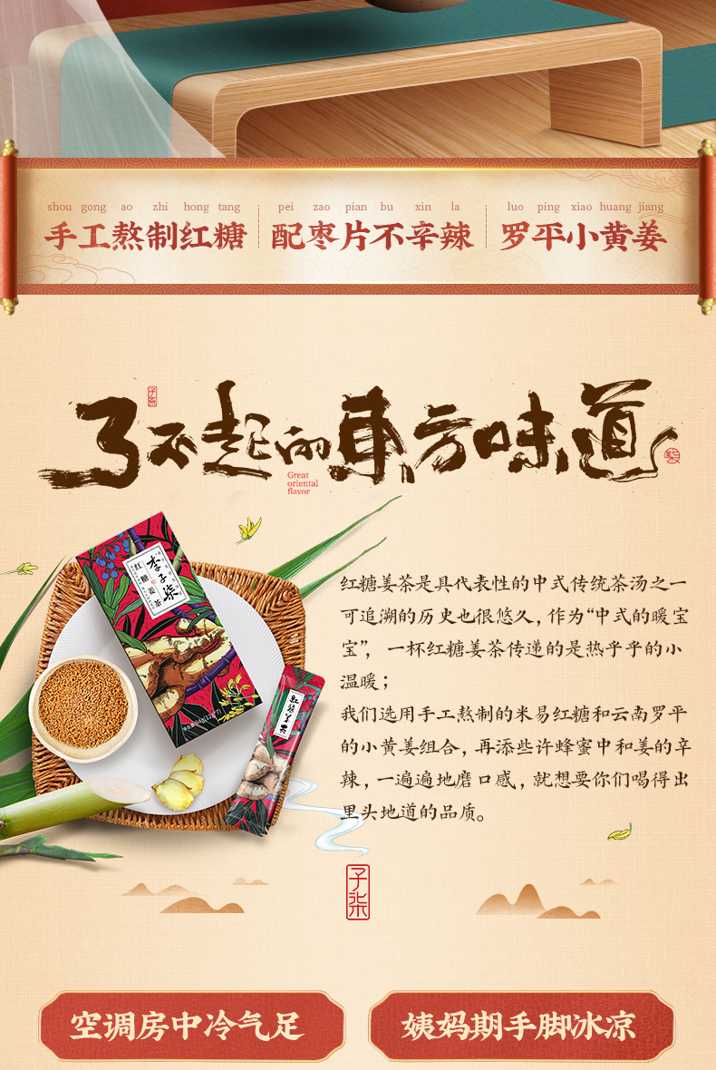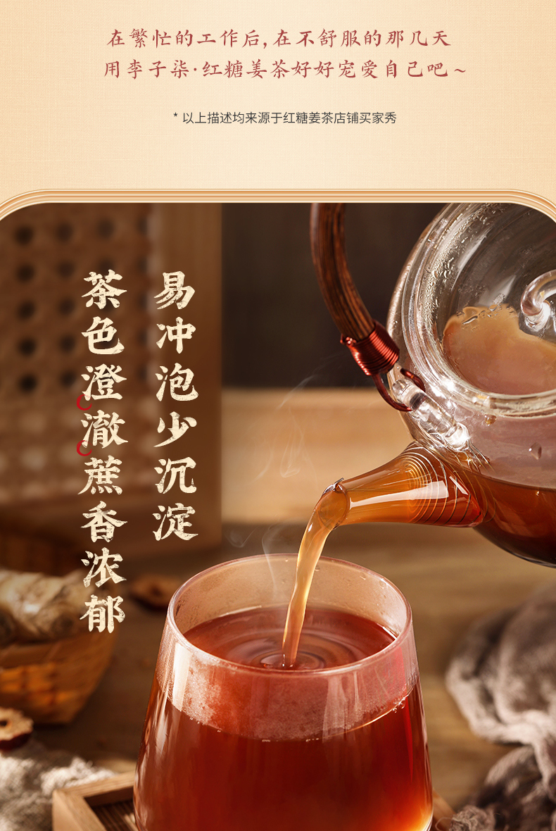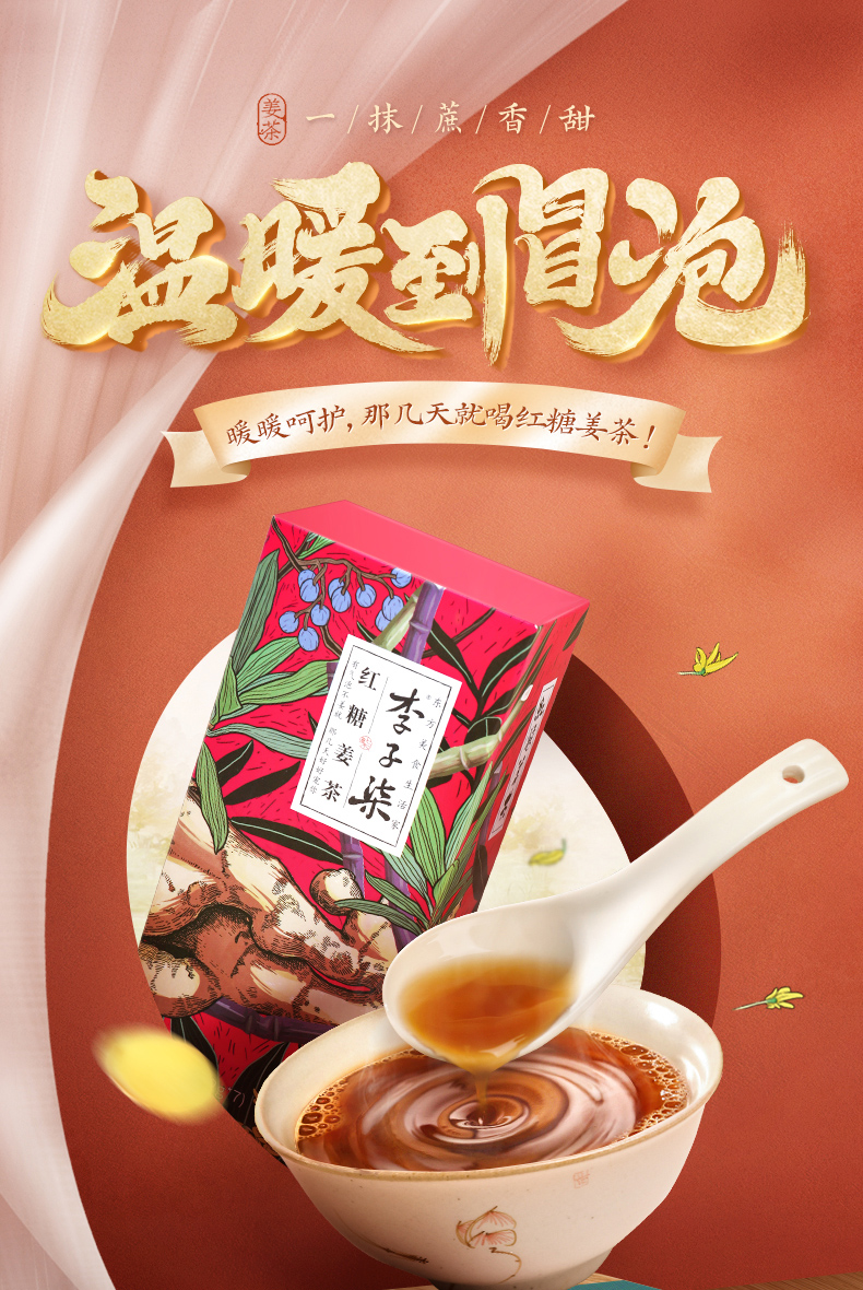李子柒红糖姜茶手工姜枣茶红糖水生姜汁冲饮送女友独立小包装2盒