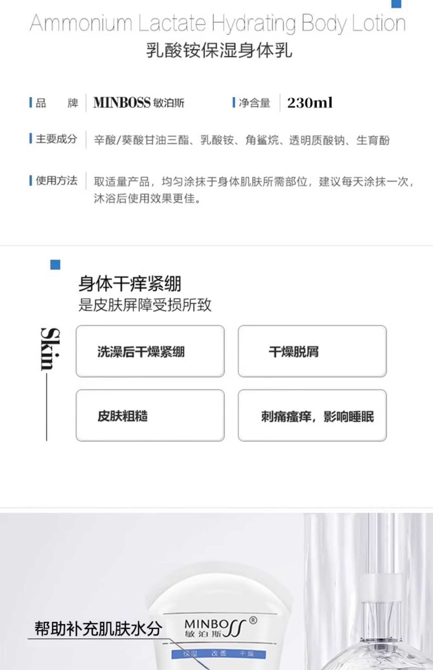 敏泊斯 | 乳酸铵高保湿身体乳230ml | 沁润保湿 改善皮肤粗糙干燥 缓解脱皮脱屑 预防皲裂