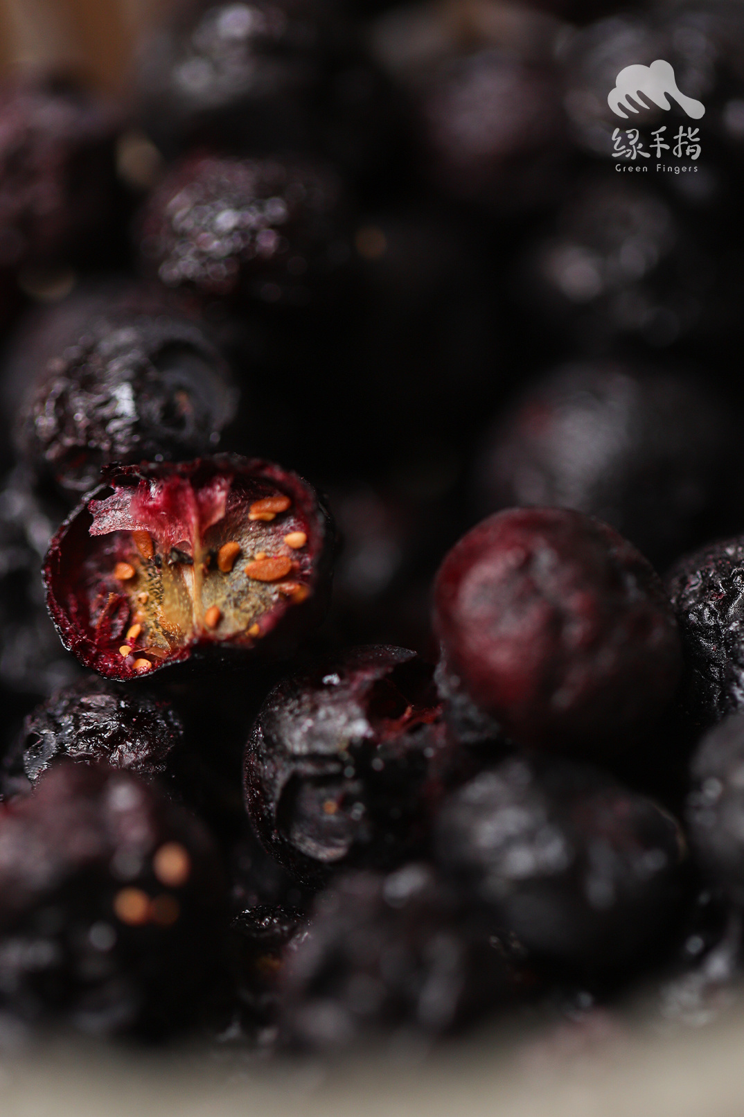 冻干蓝莓是绿手指自己的加工厂做的,无防腐剂,也没有糖等增甜剂,大家吃到的就是蓝莓自然的味道,微微的果酸,浓郁的果香,酥脆的口感。