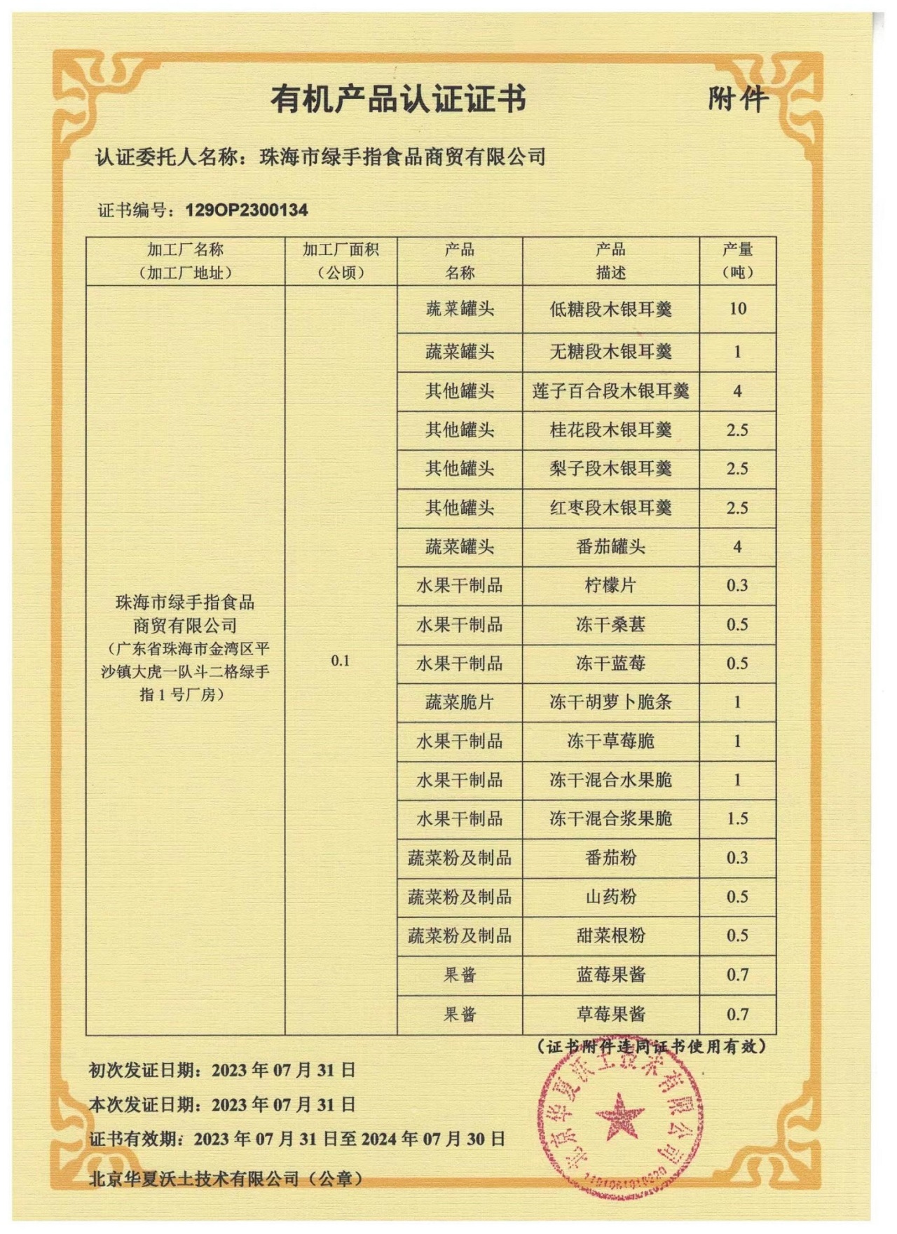 2022年,农场的加工厂落成,我们坚持原料生产全程无农药、无化肥、无除草剂、无添加剂,加工过程坚持有机标准,不使用防腐剂等添加剂。2023年,加工厂也申请并顺利拿到有机认证。