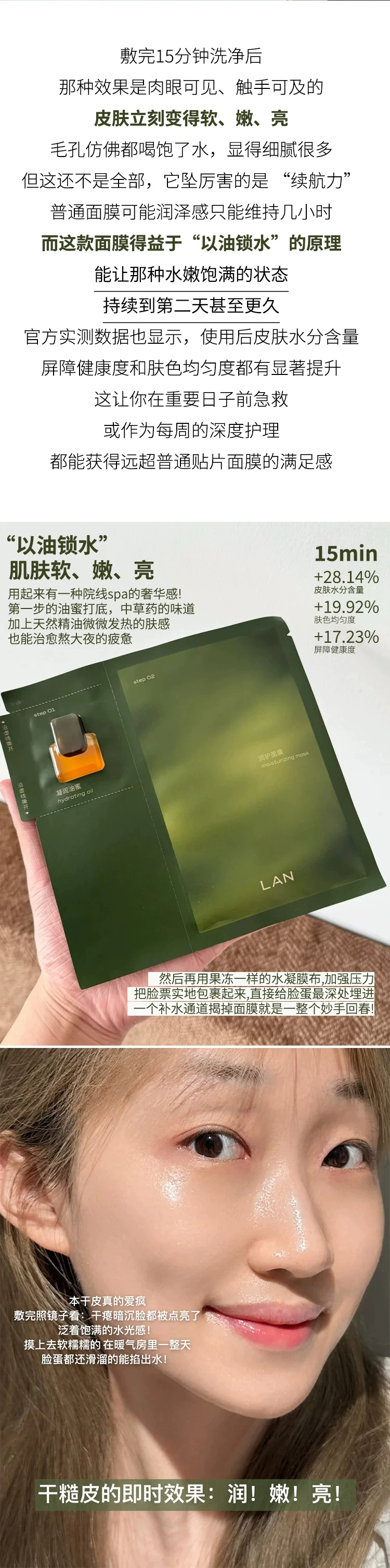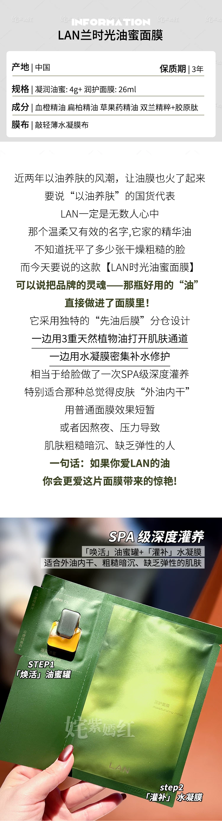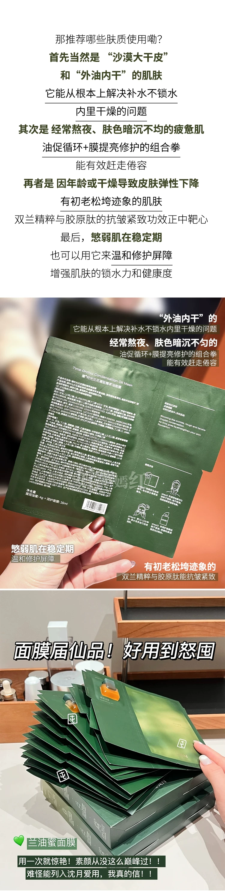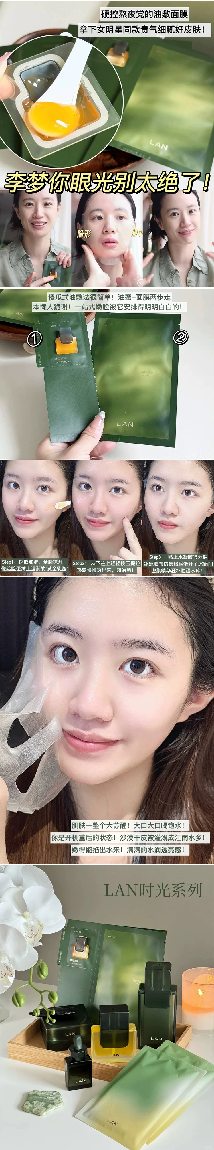沙漠皮润起来了~LAN兰油蜜面膜时光兰花保湿滋润修护舒缓油敷膜5片装