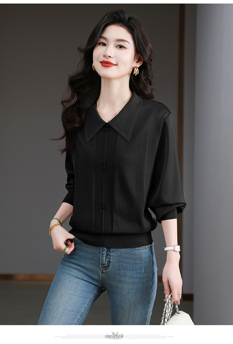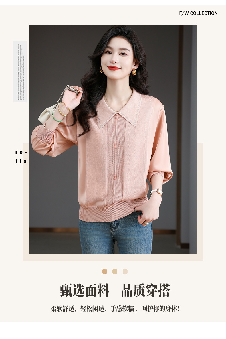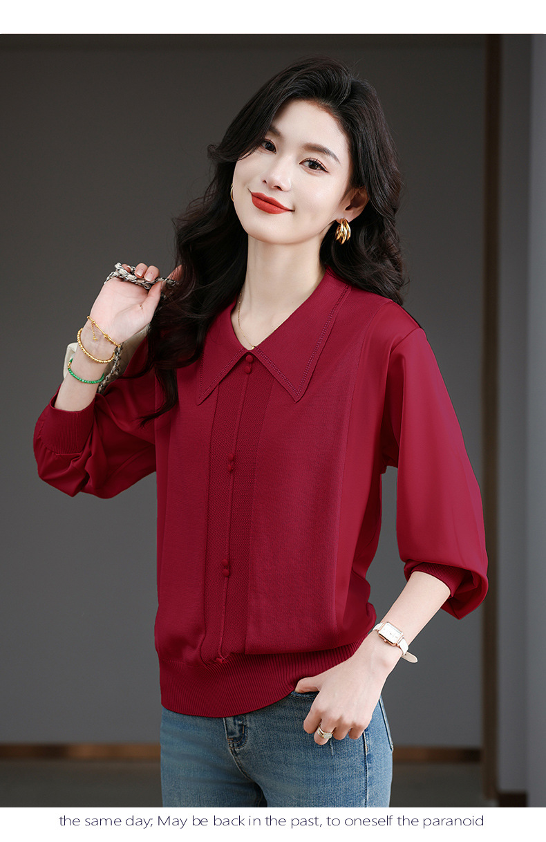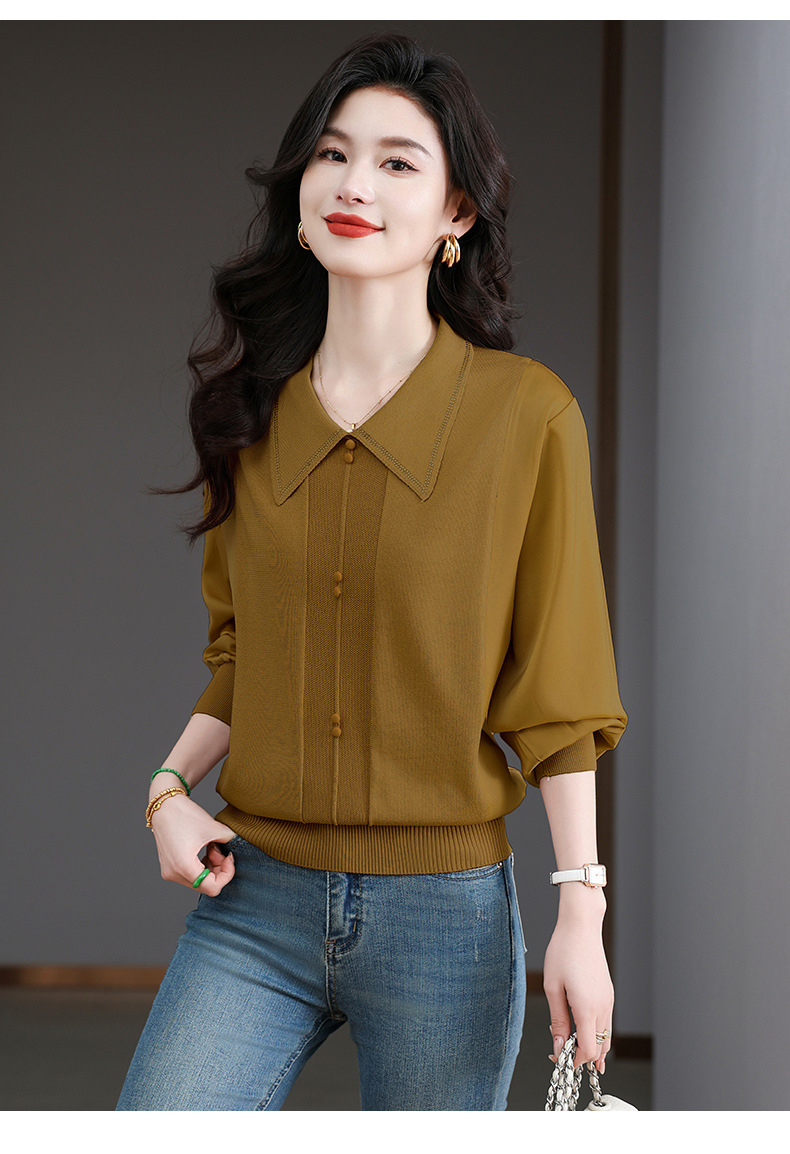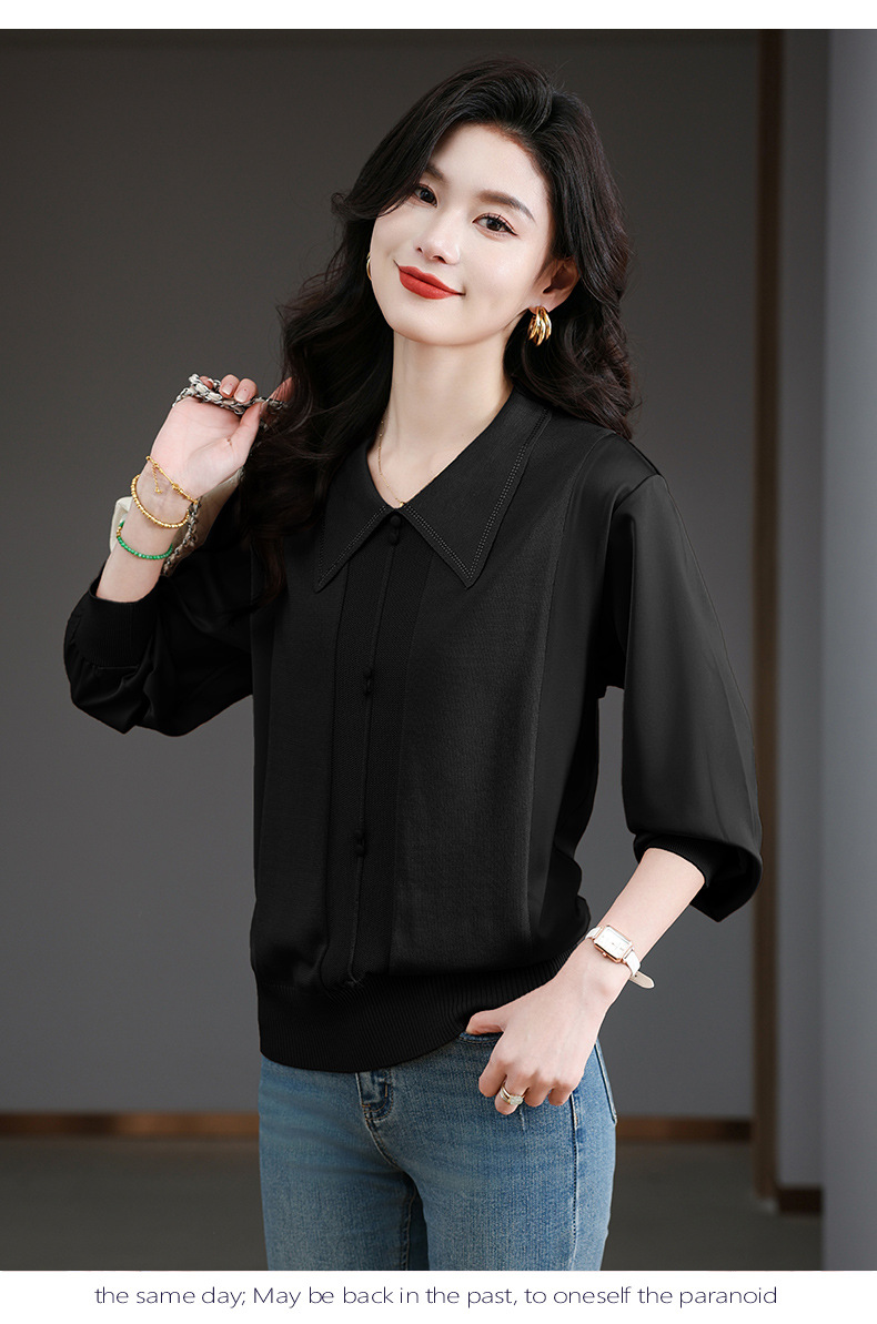 CC-BSM-737针织t恤女士娃娃翻领遮肚子显瘦上衣2025新款春秋打底衫