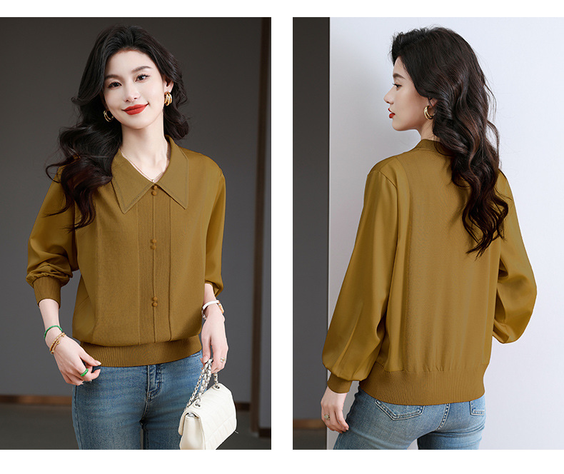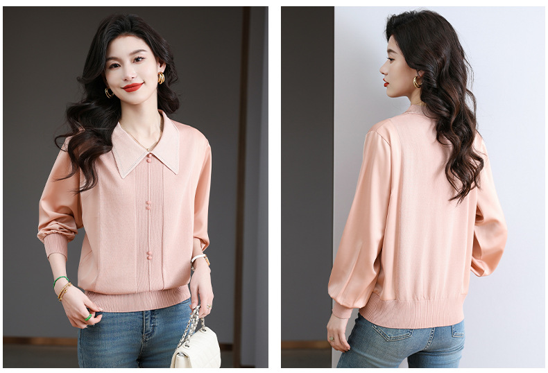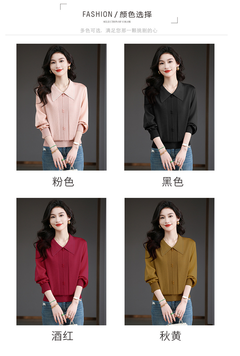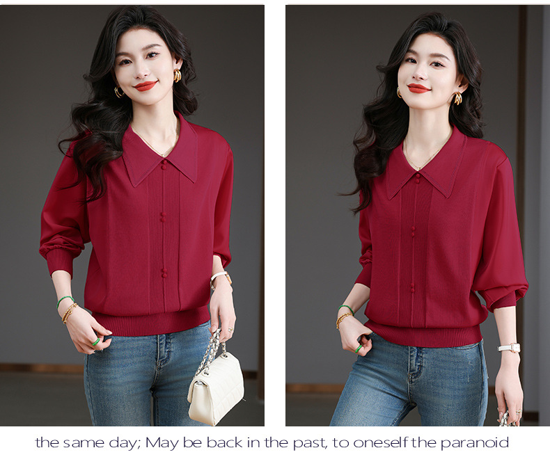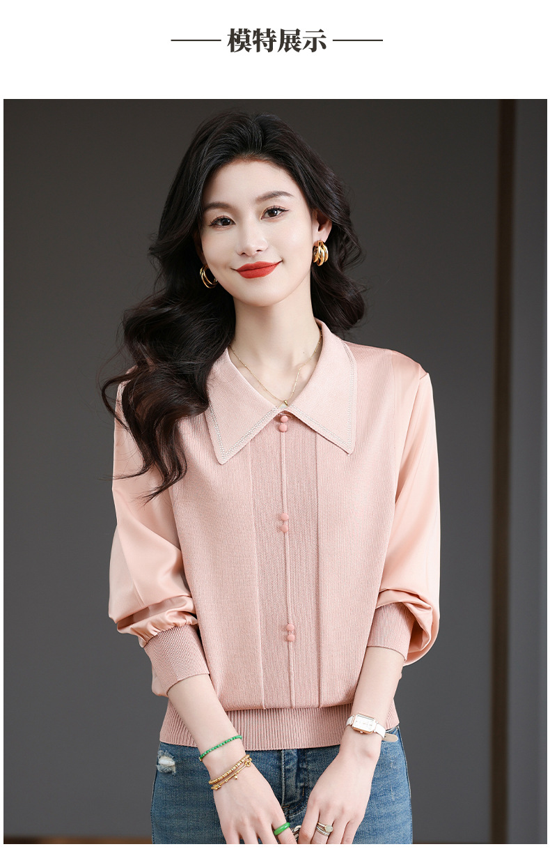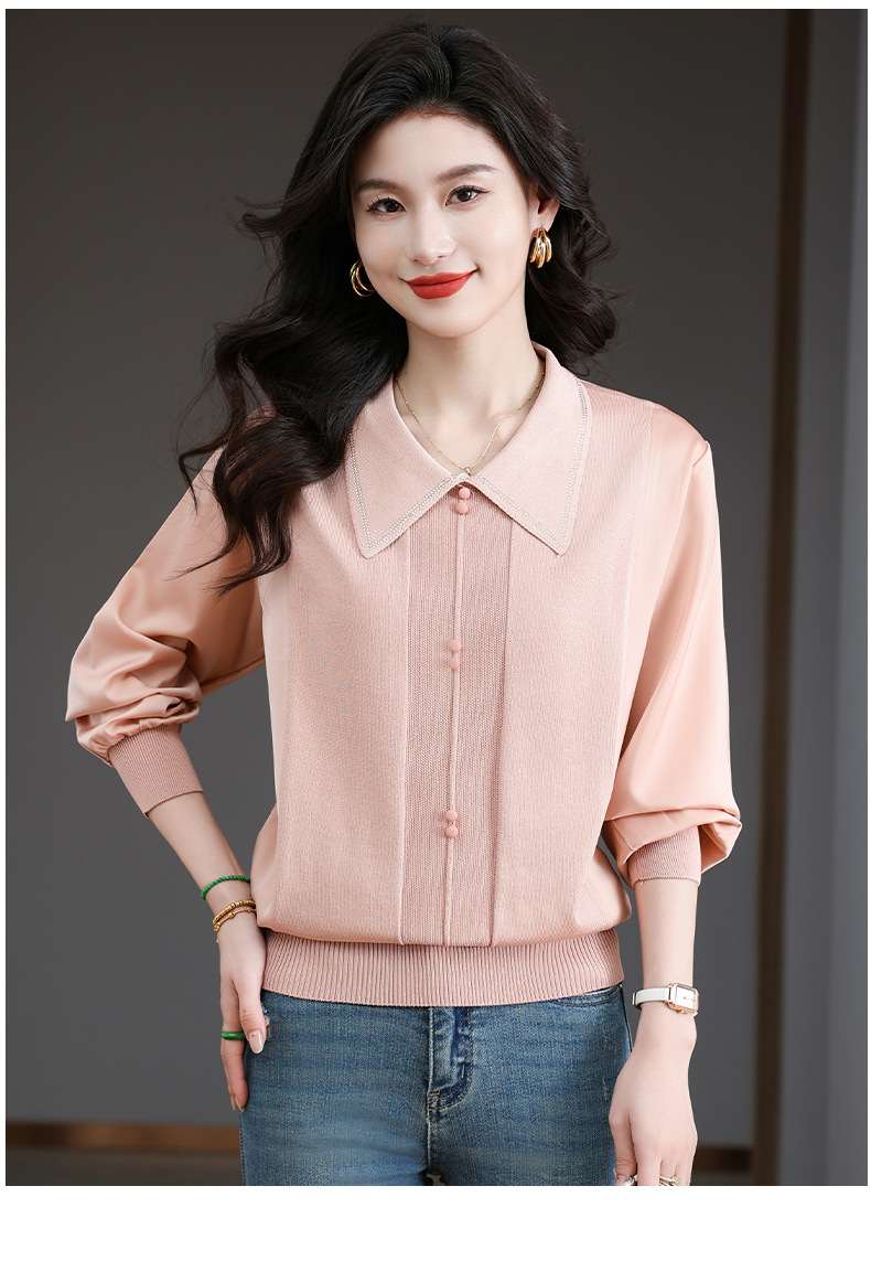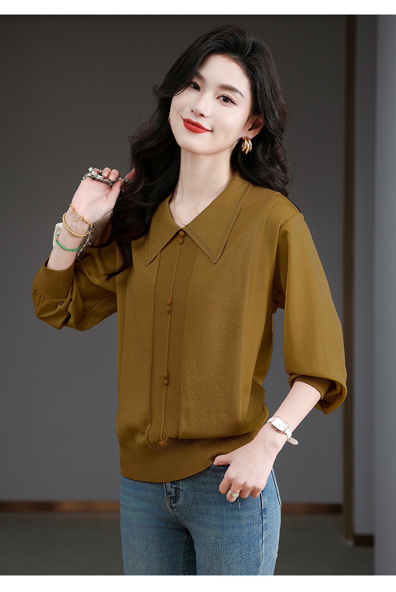 CC-BSM-737针织t恤女士娃娃翻领遮肚子显瘦上衣2025新款春秋打底衫