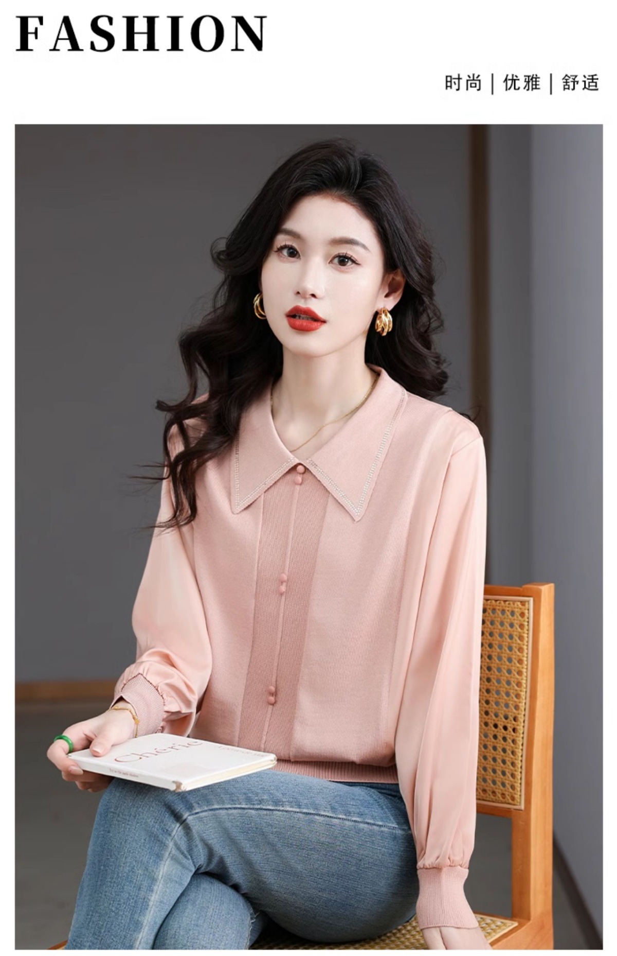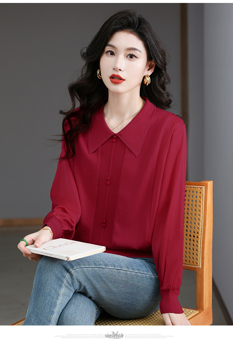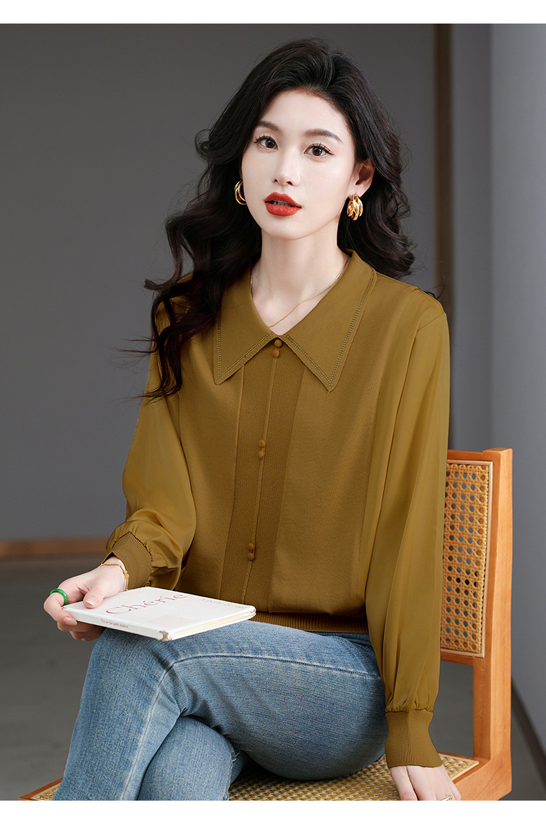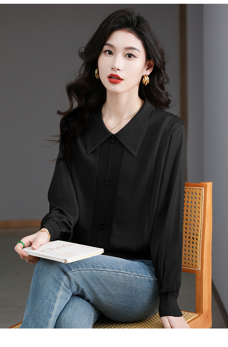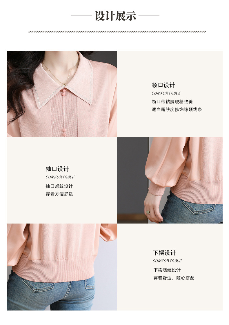 CC-BSM-737针织t恤女士娃娃翻领遮肚子显瘦上衣2025新款春秋打底衫