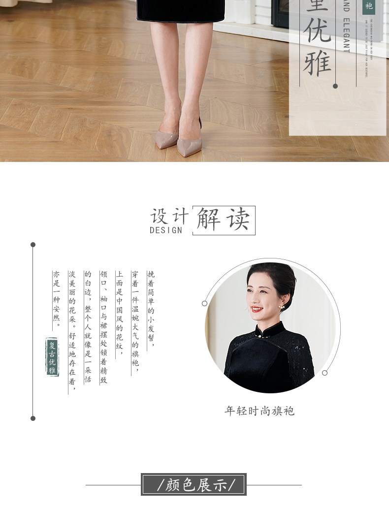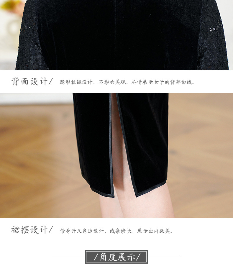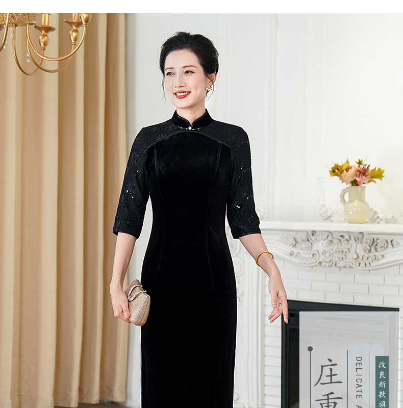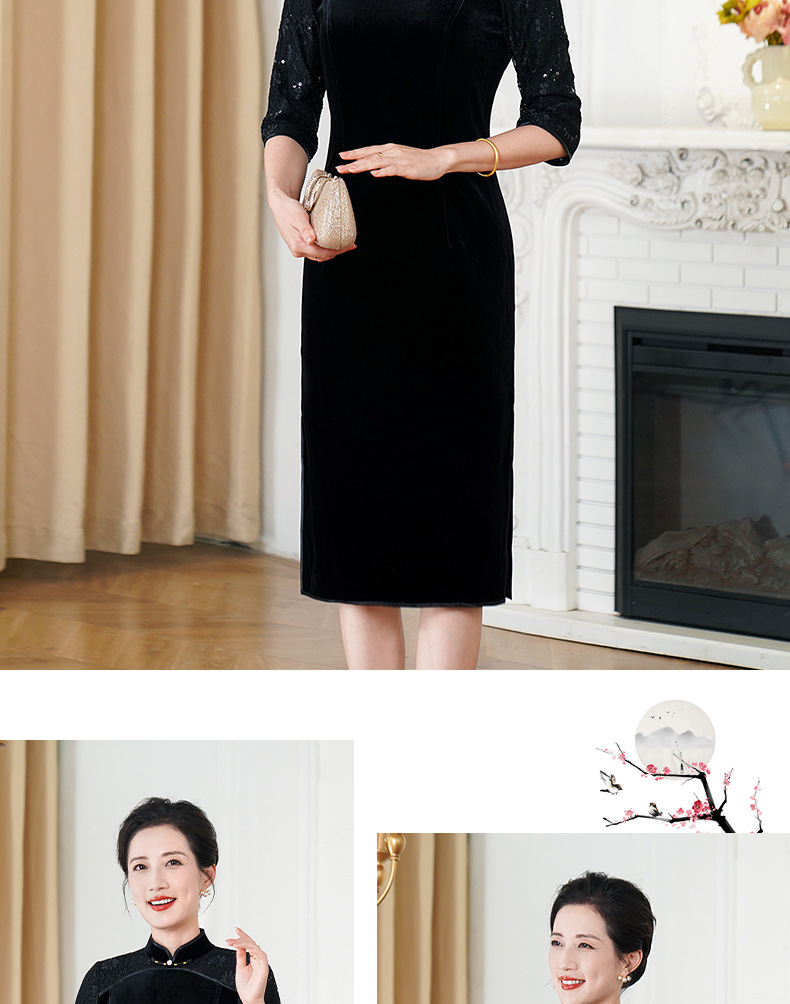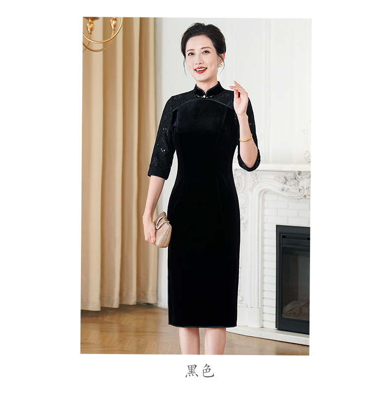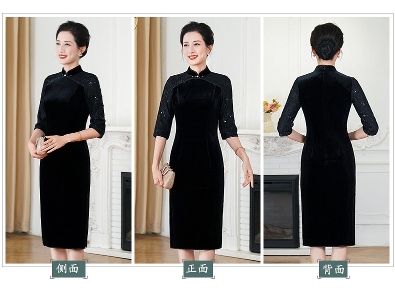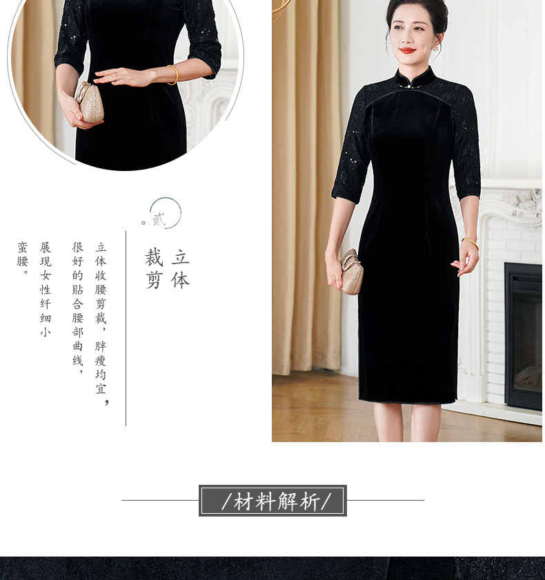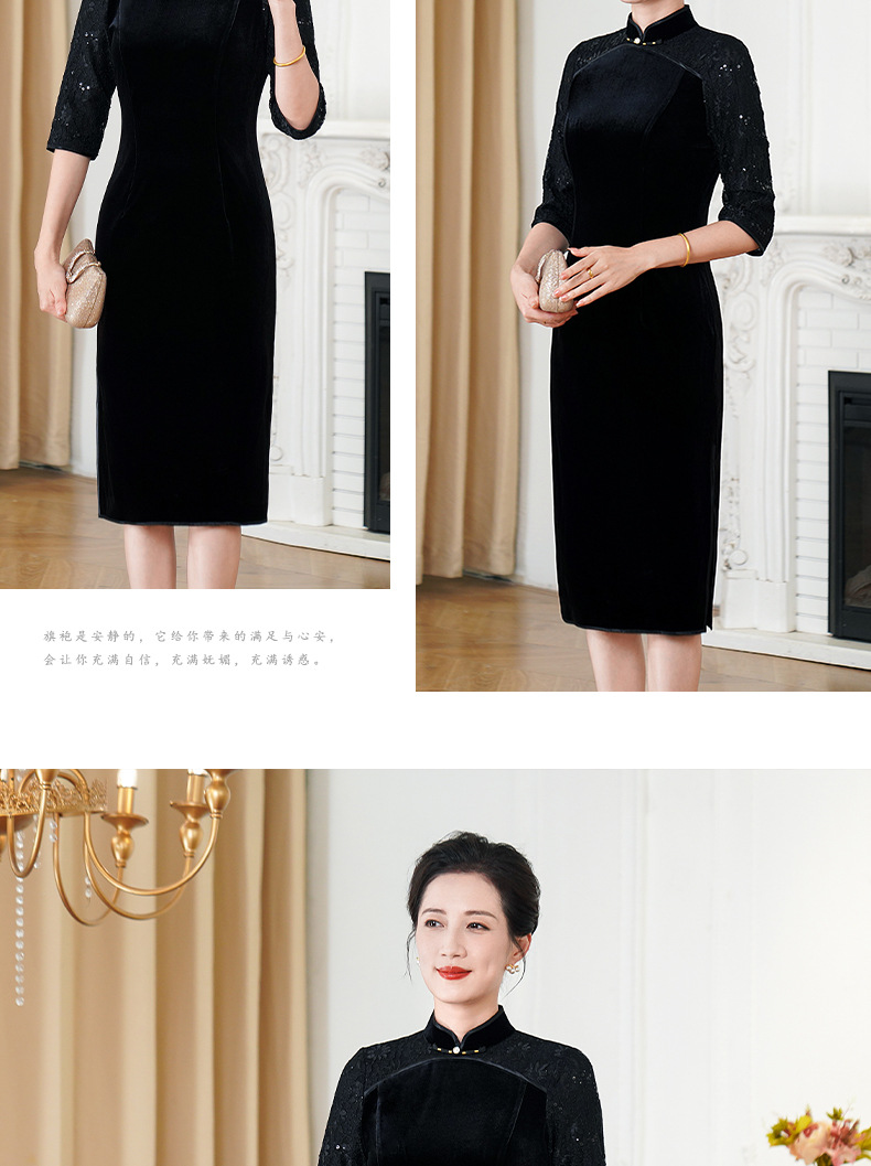 HYX秋季新款高级感旗袍连衣裙国潮婚宴气质中袖修身日常穿拼接