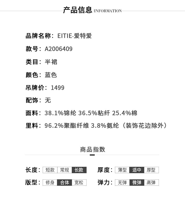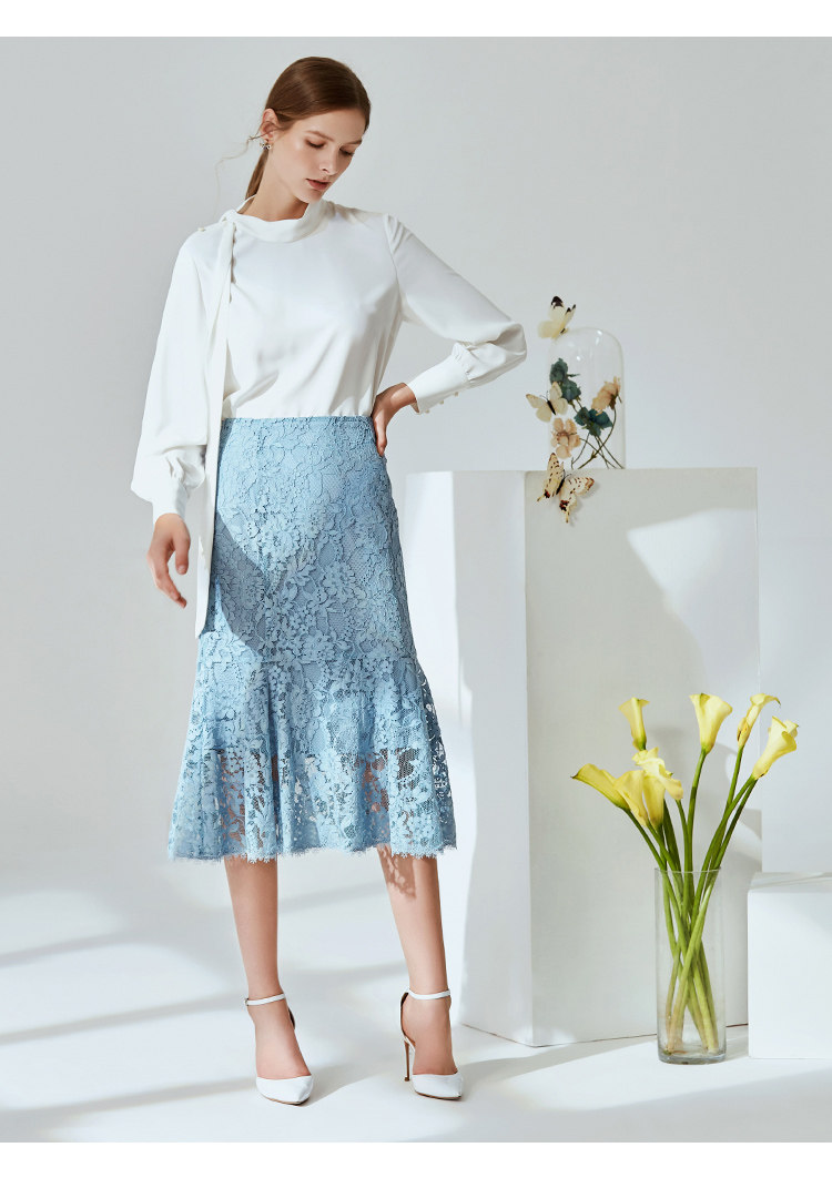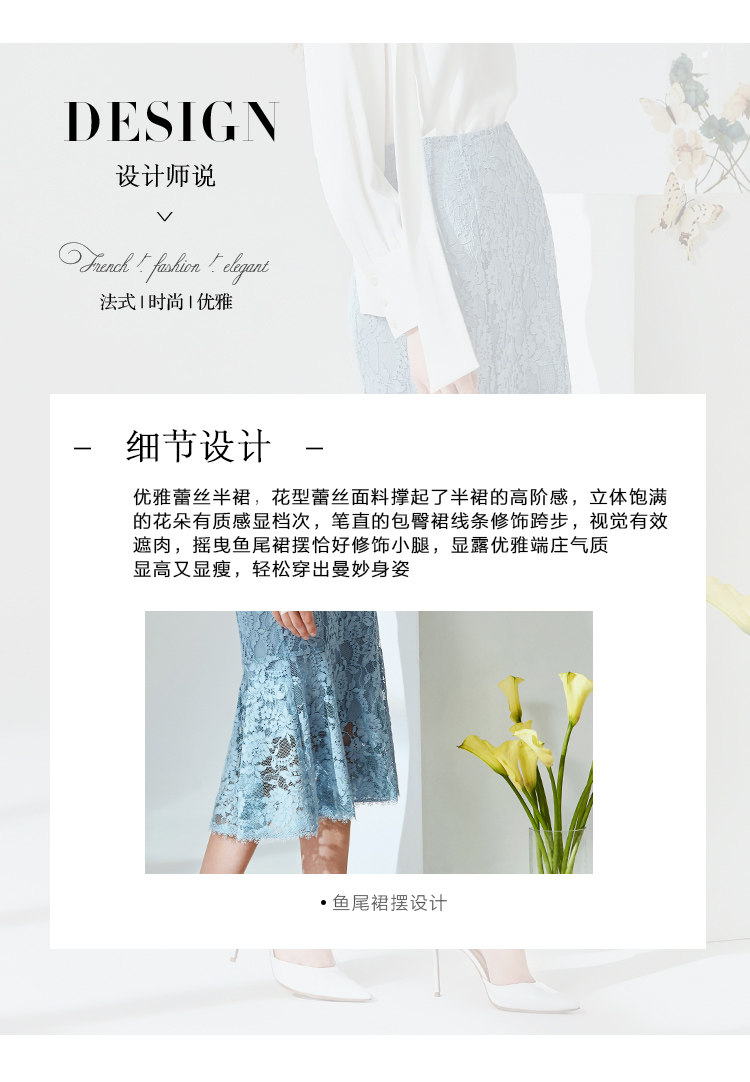 EITIE爱特爱春季新款通勤时尚纯色包臀鱼尾蕾丝钩花半身裙女A2006409