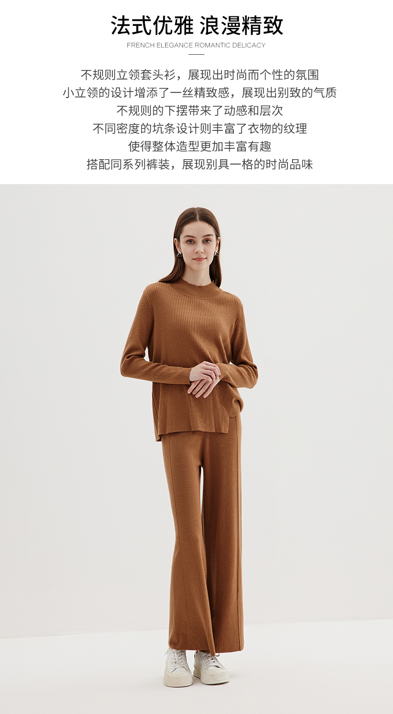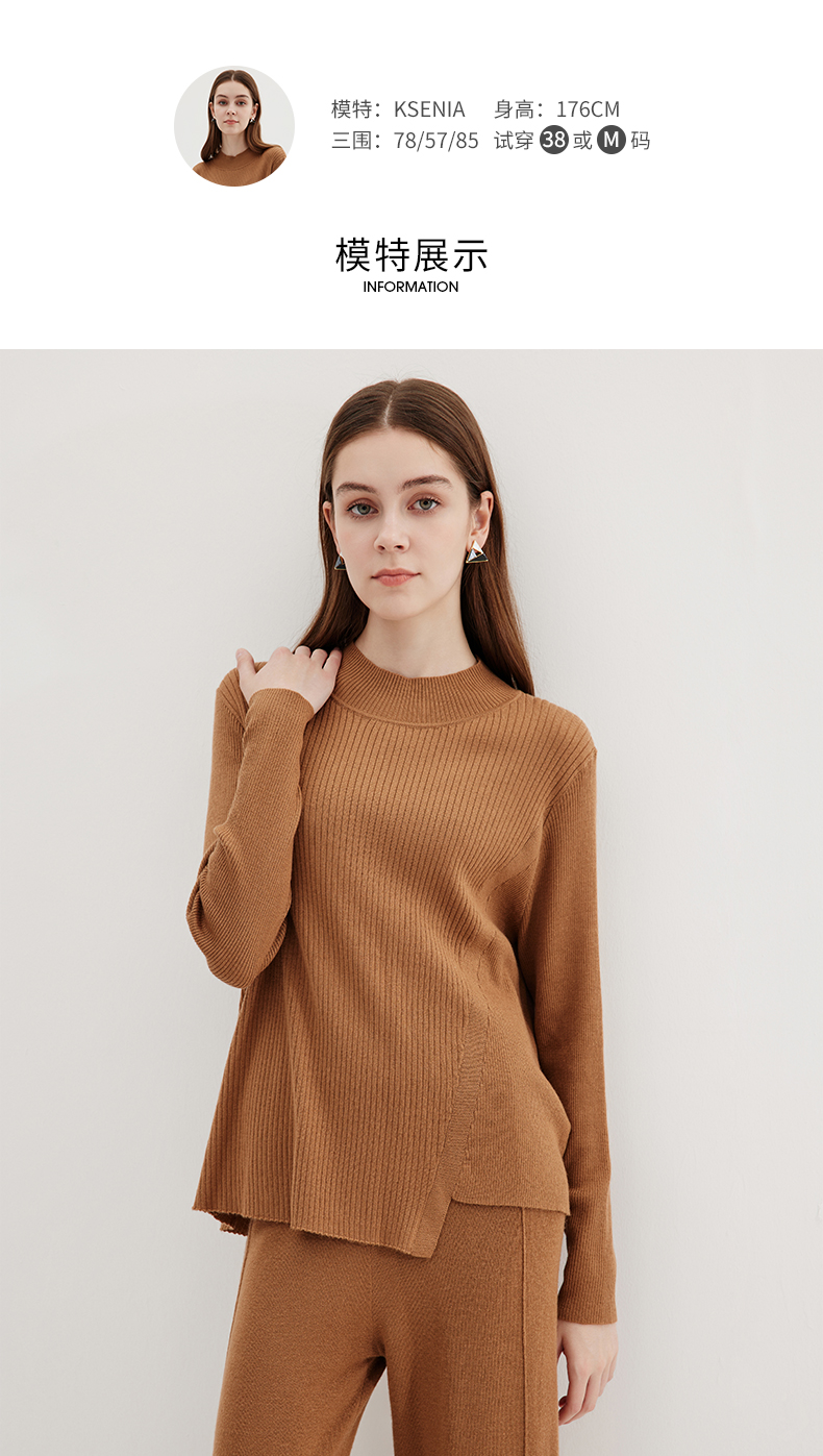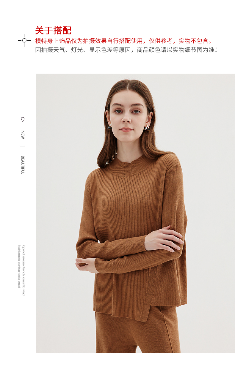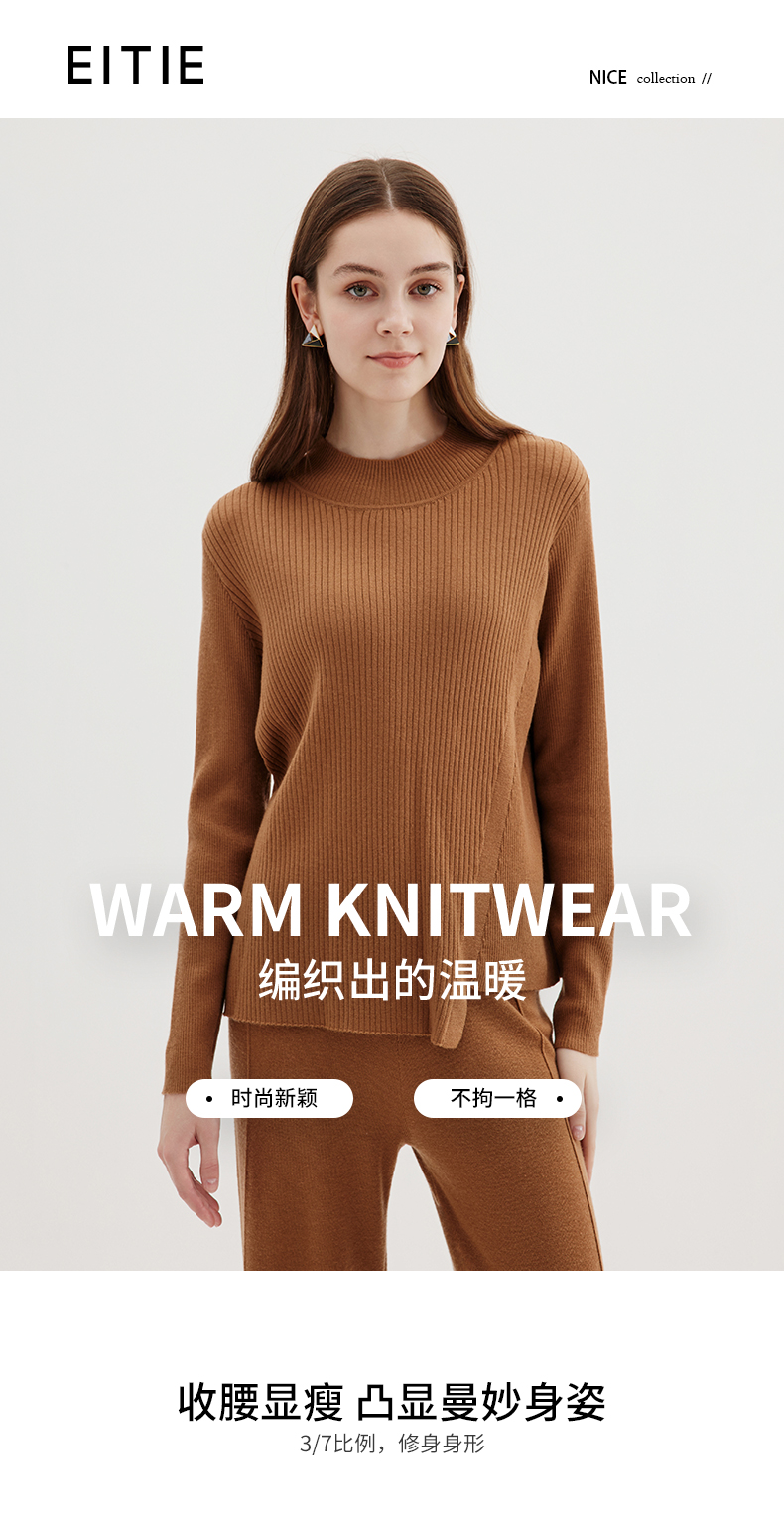 EITIE爱特爱冬季新款时尚气质半高领简约纯色针织衫上衣7201907