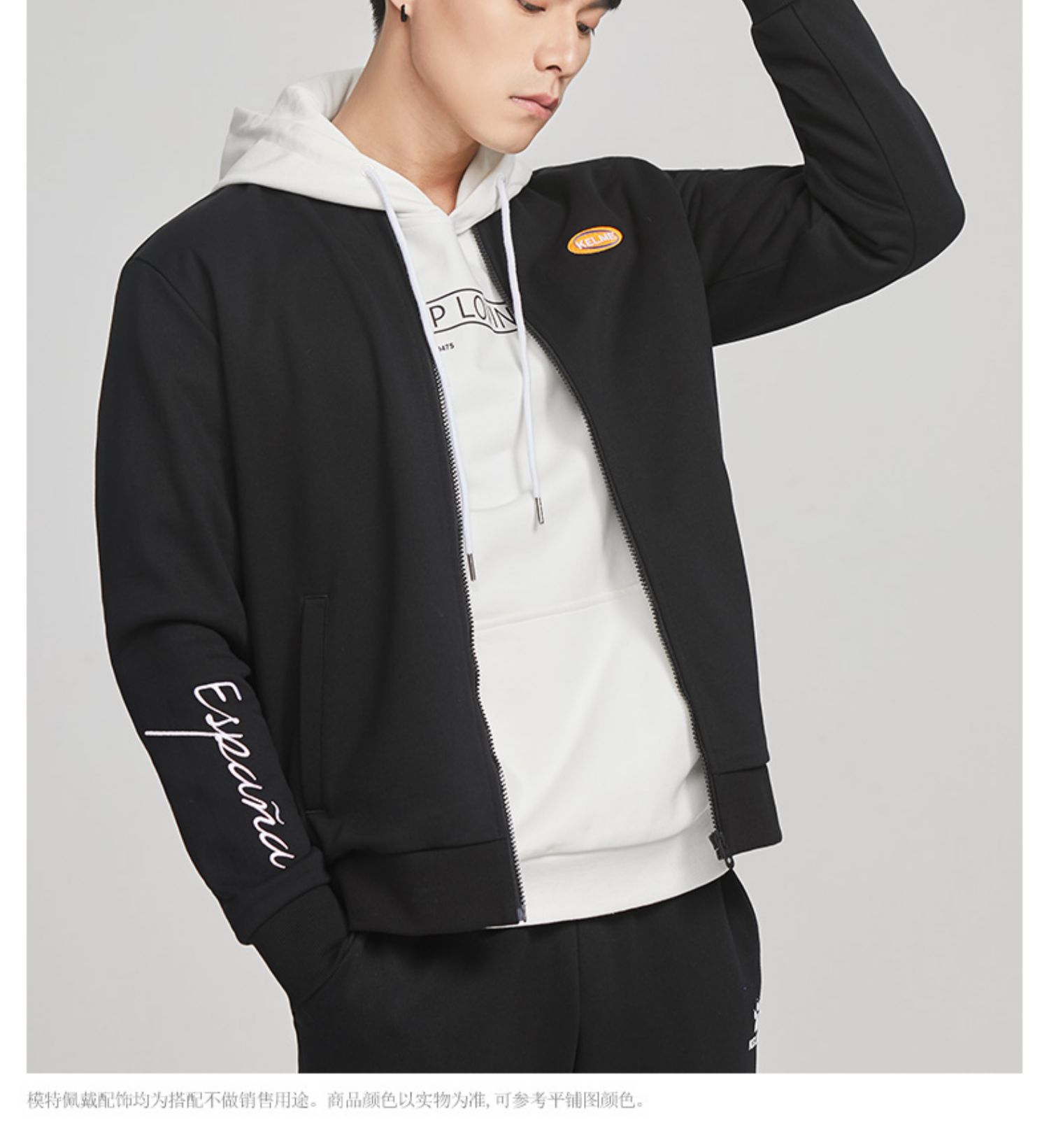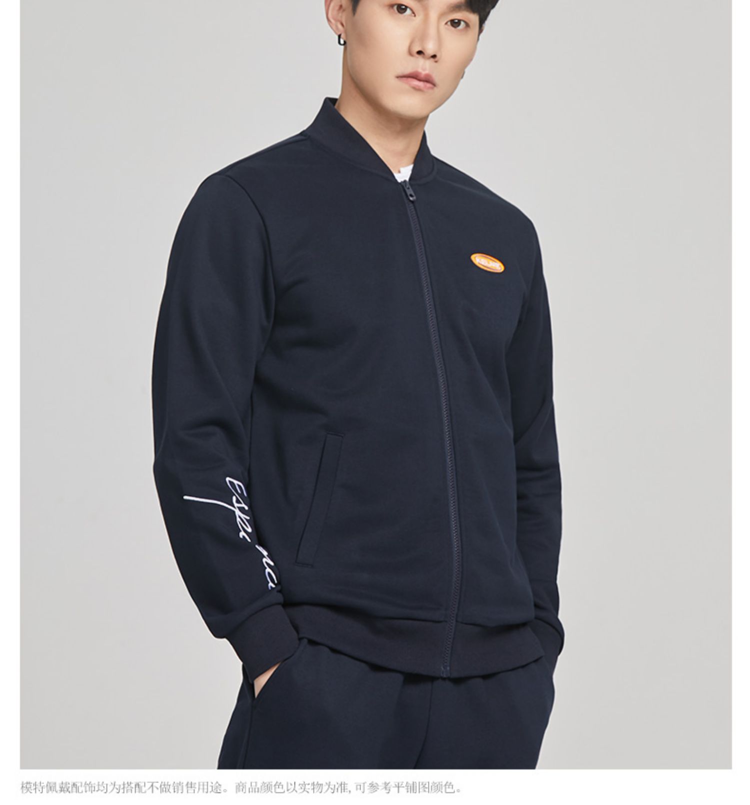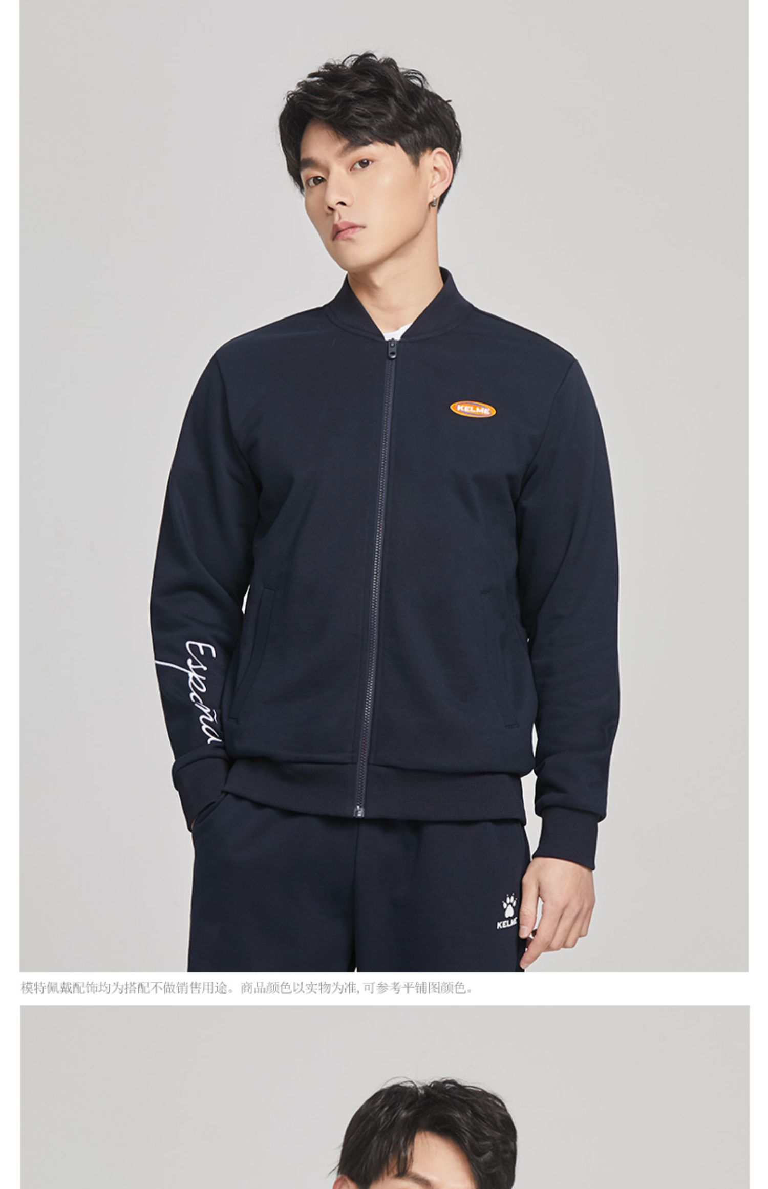 卡尔美运动休闲夹克春秋男针织开衫外套纯色拉链茄克上衣