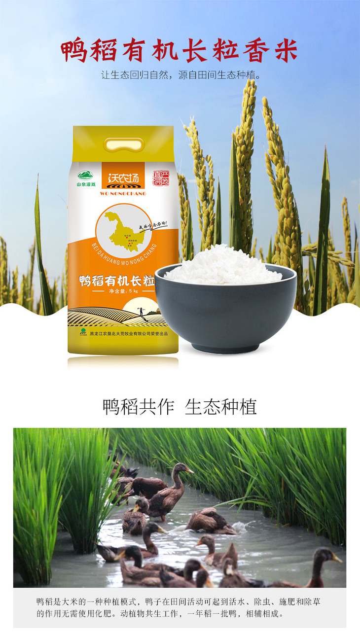 北大荒牧业沃农场鸭田稻有机长粒香真空东北大米5KG一袋包邮