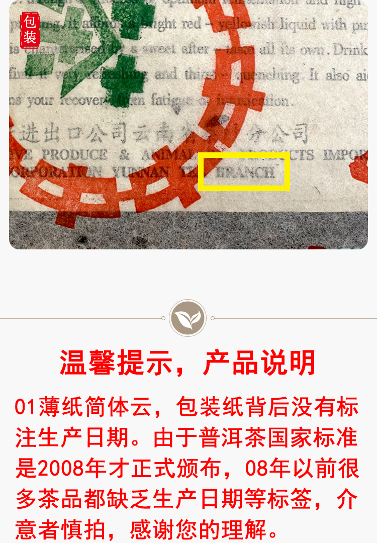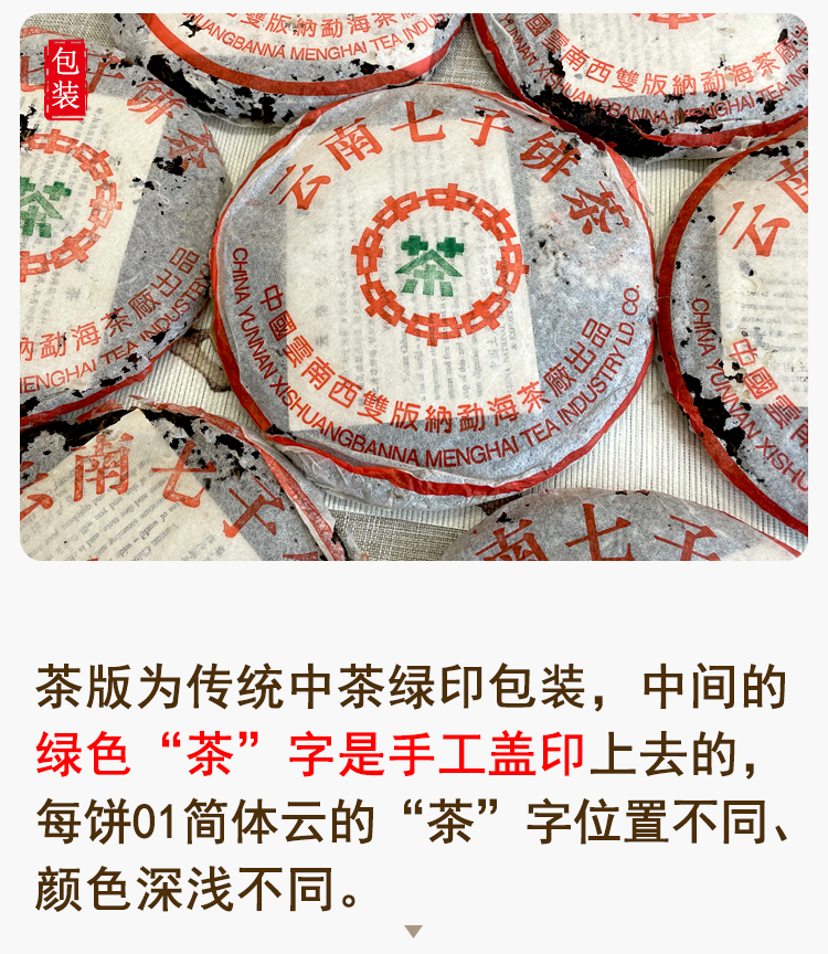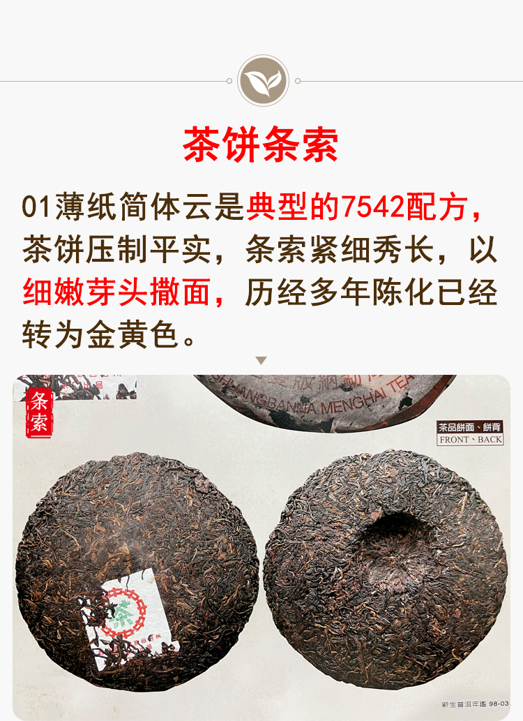 2001年绿印简体云7542薄纸小票批次 国营勐海茶厂经典标杆老生茶 干仓真品支持鉴定 价格好明星老生茶 标价为单片的价格