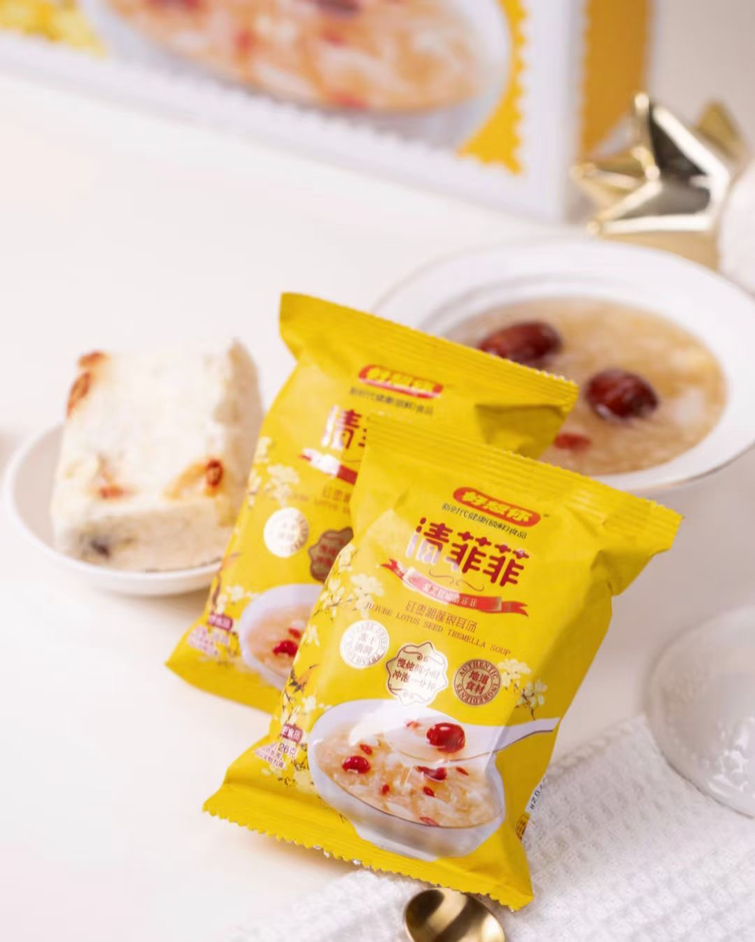 【高定滋补佳品好想你红枣湘莲银耳羹】 最新日期到货秋冬季养生,喝清菲菲冻干银耳羹,有清肺养血、滋阴化痰的功效,可谓是养生佳品![爱心]#好想你陪你四季养生每提2盒装,一盒14袋