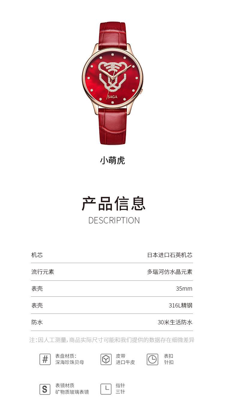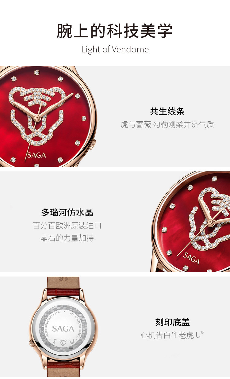 【虎年限定】SAGA世家手表女款2022年新款简约时尚轻奢水晶腕表
