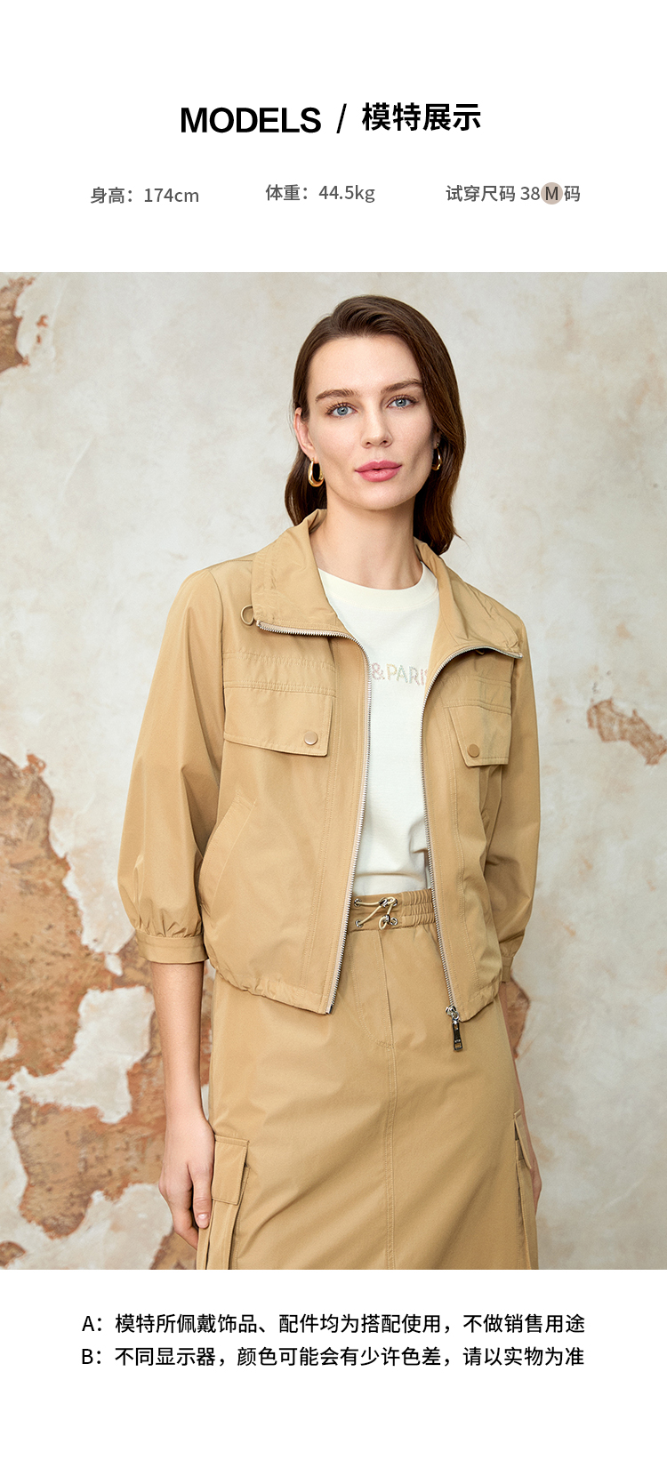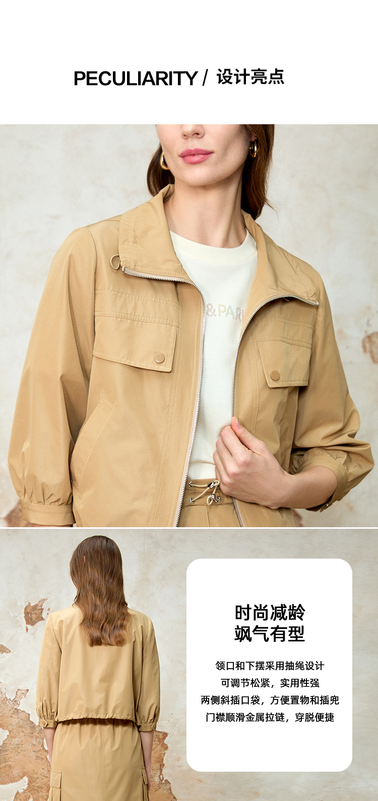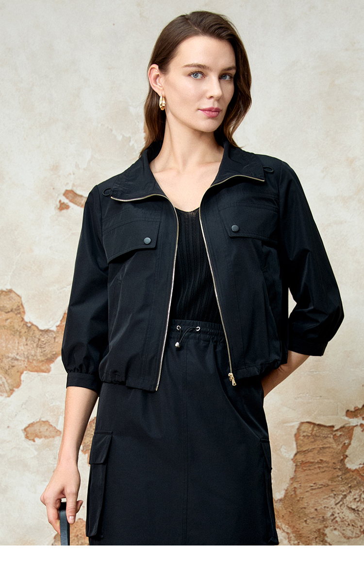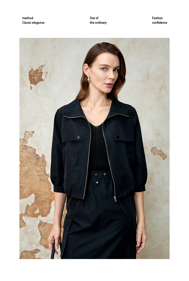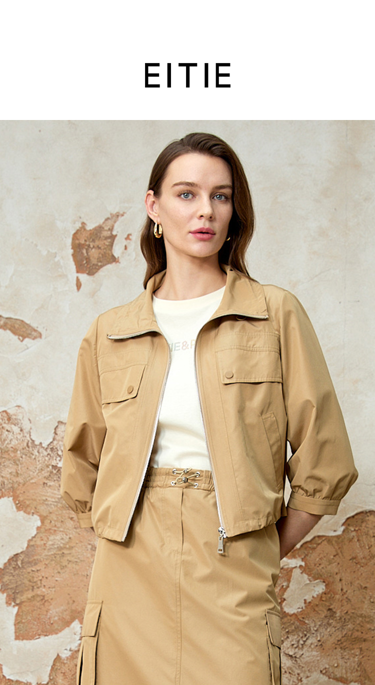 EITIE爱特爱七分袖修身显瘦短款休闲外套春新款8103812