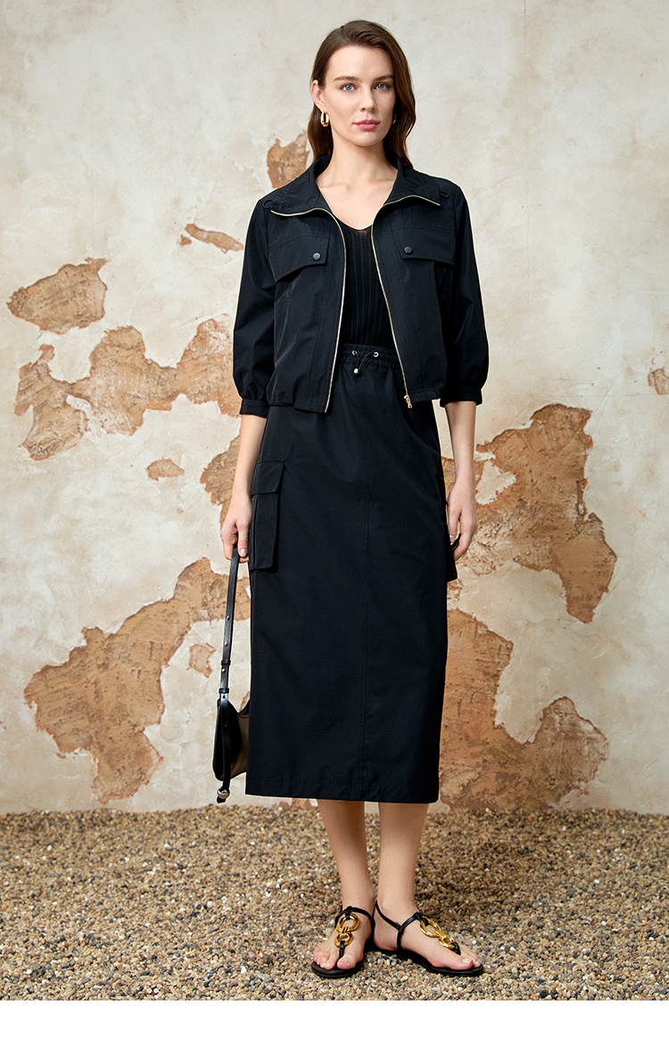 EITIE爱特爱春季新款时尚百搭通勤显瘦垂感伞裙A字半身裙女裙A2206905