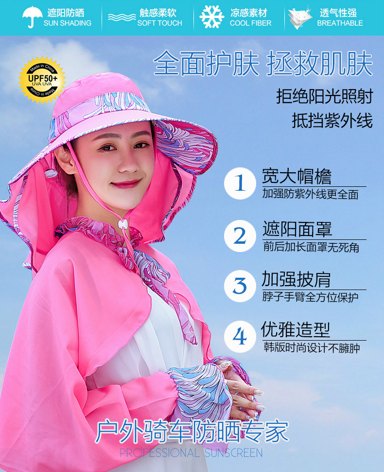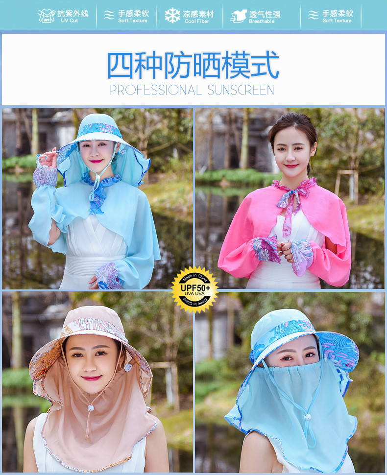 【清仓特价,不退换】YL夏季遮阳防晒帽(帽子+披肩)