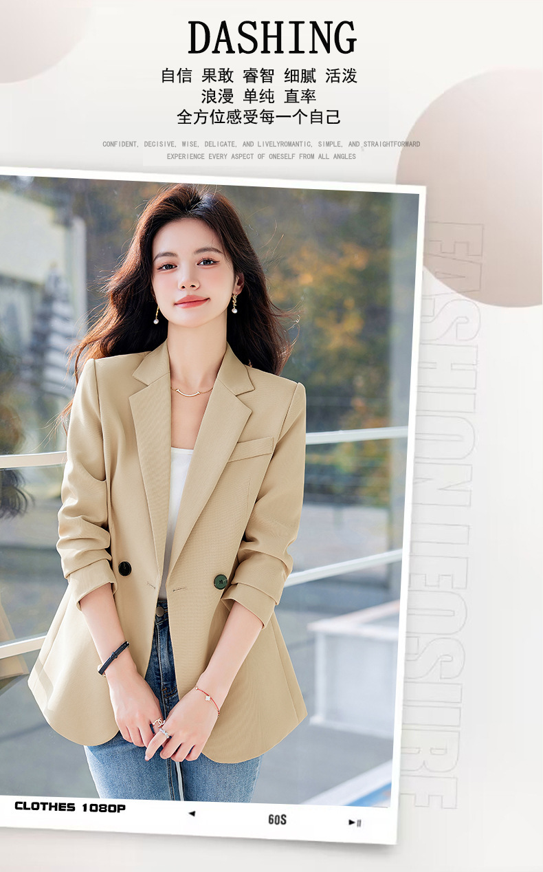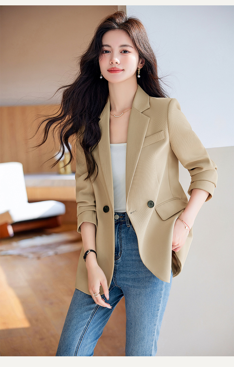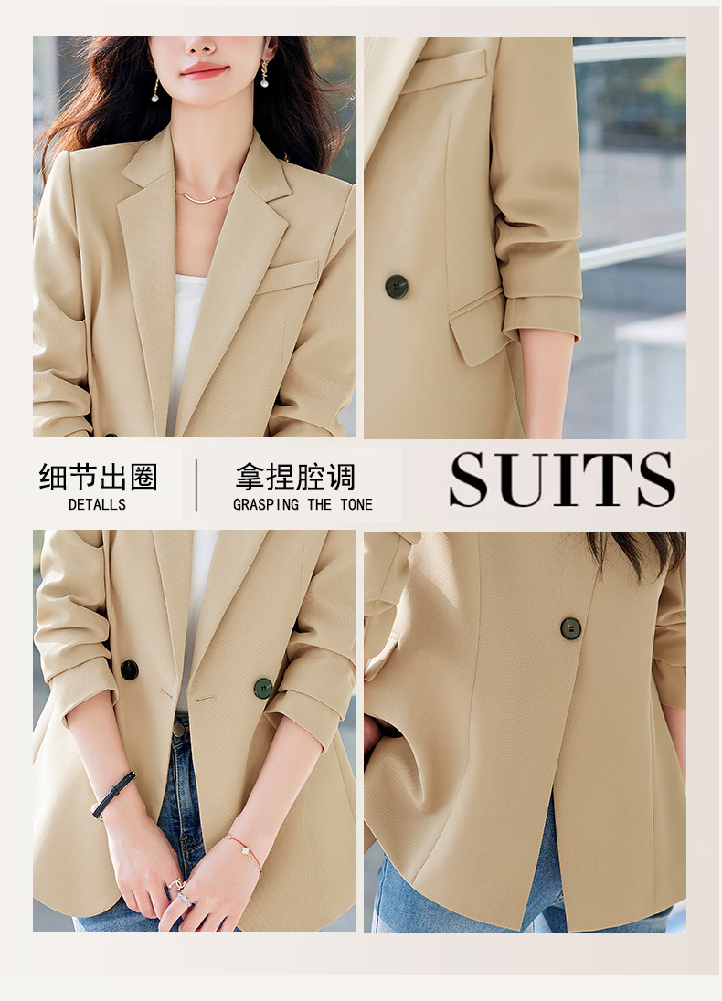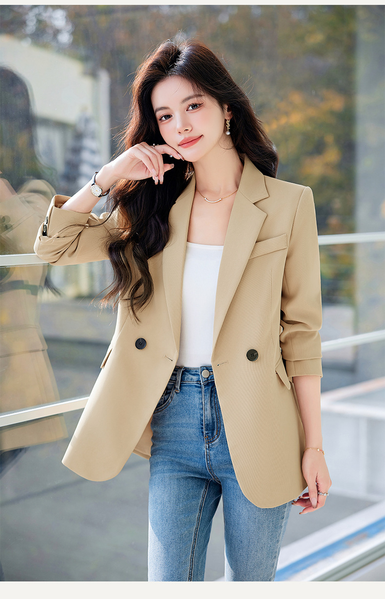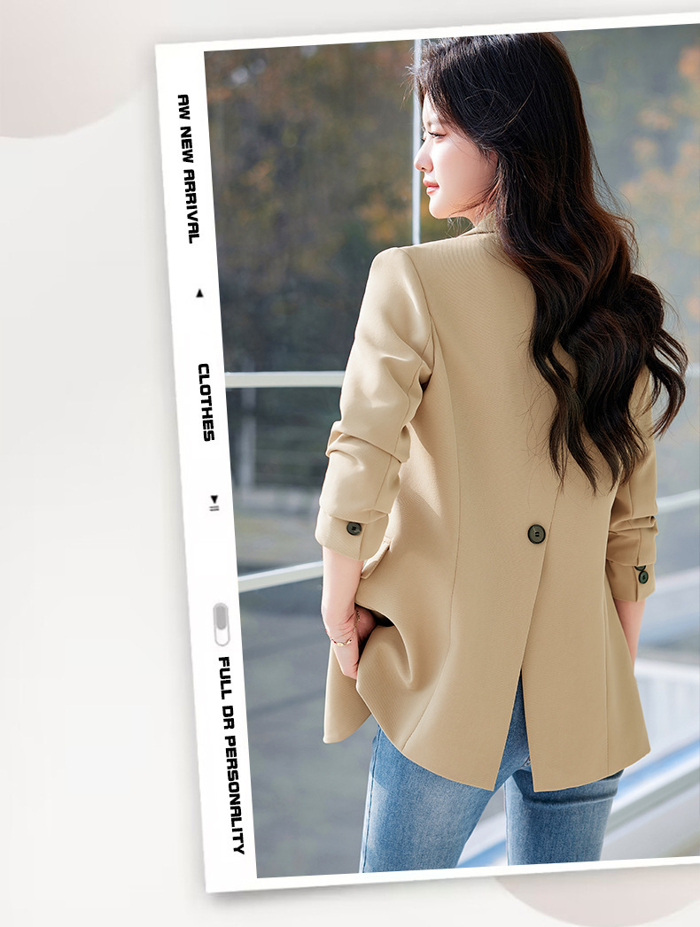 HZW-杏色西装外套女春秋2024新款设计感小众休闲气质韩版小西服